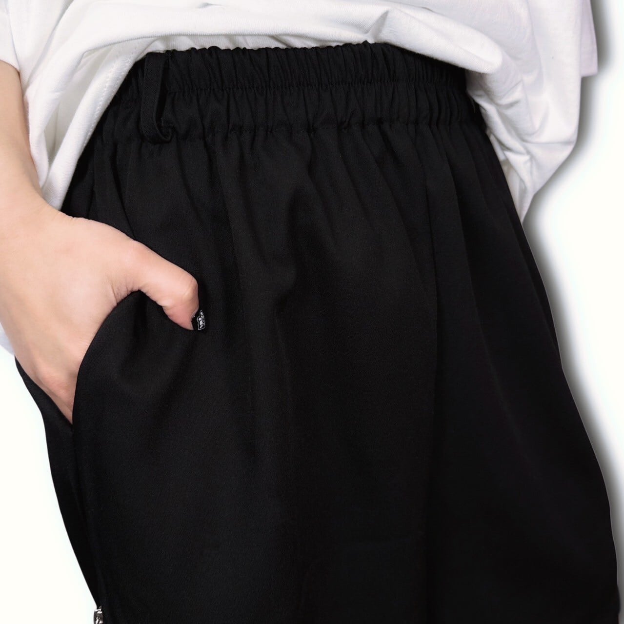 ジッパーを閉めればシンプルなワイドパンツに早変わり♪
