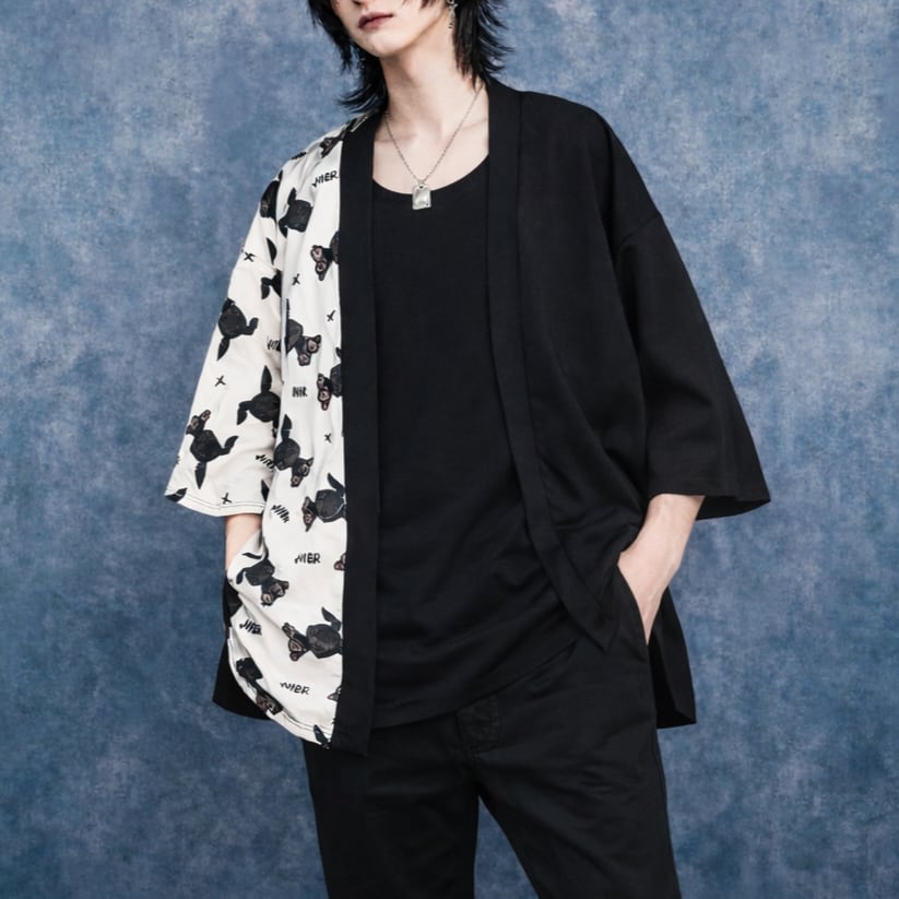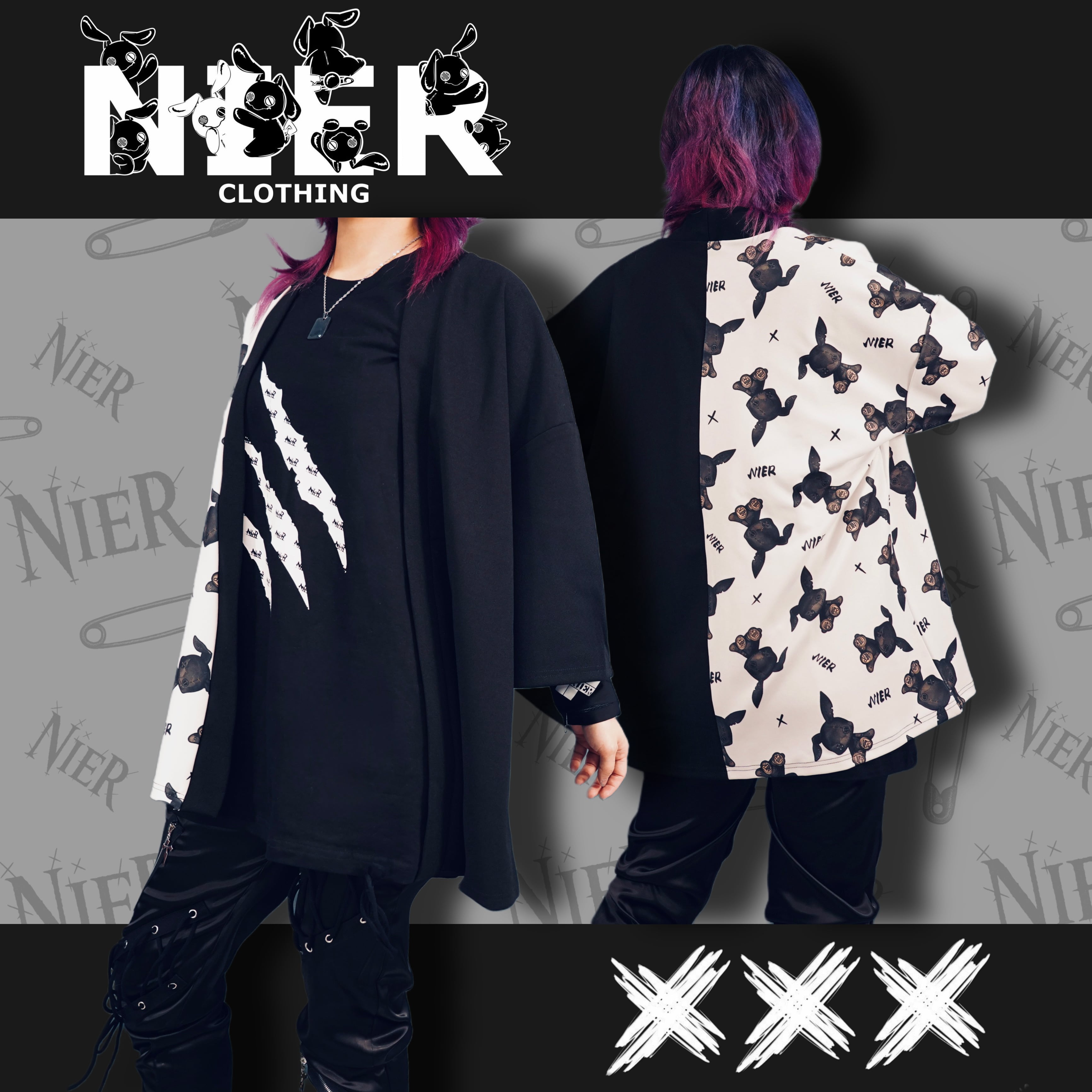 もう片側は無地ブラックで仕上げた、和とストリートを掛け合わせたNIERらしい一着です。