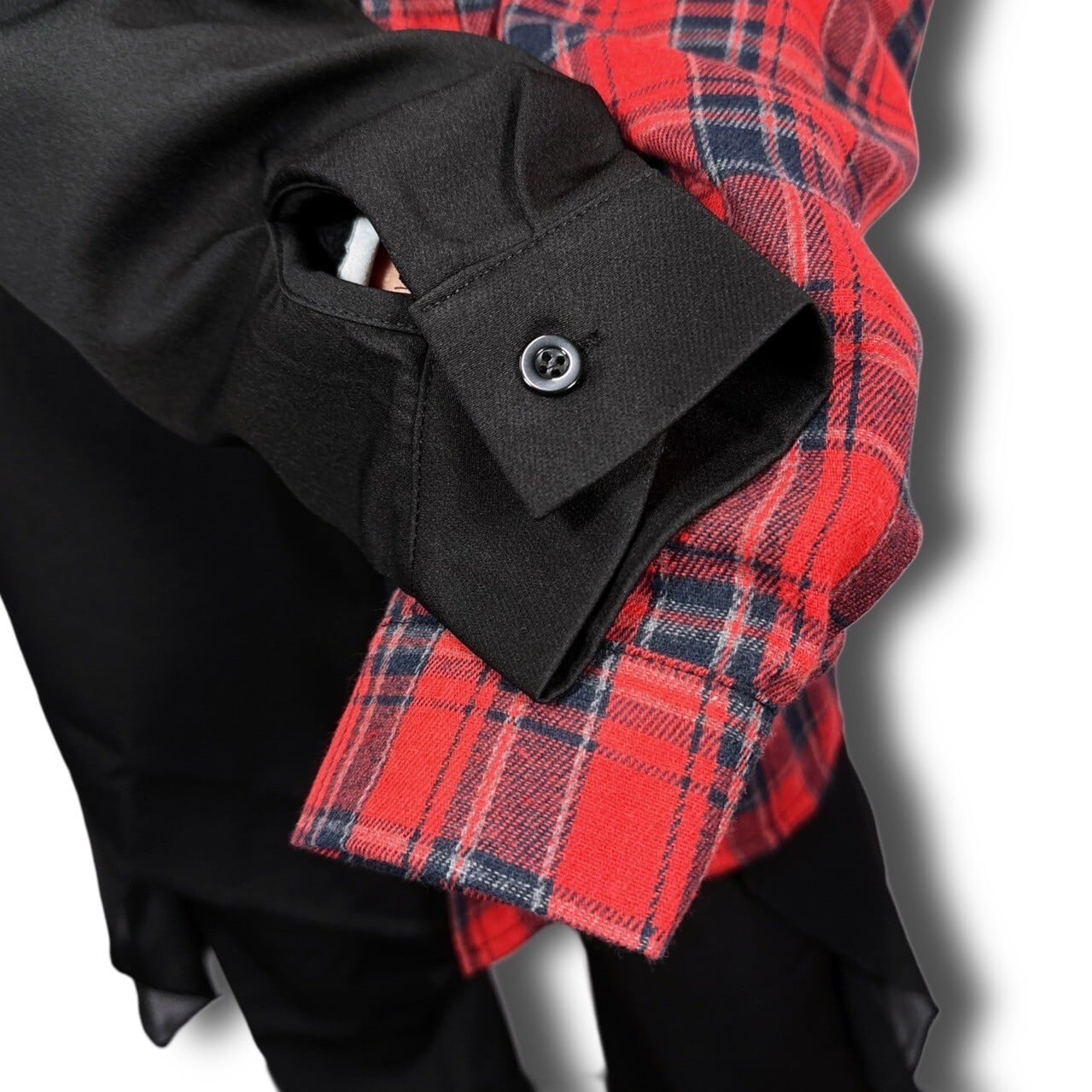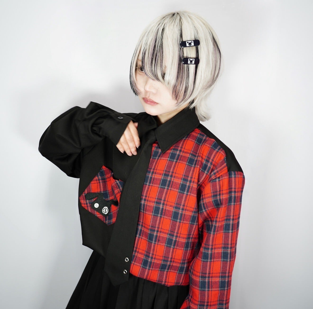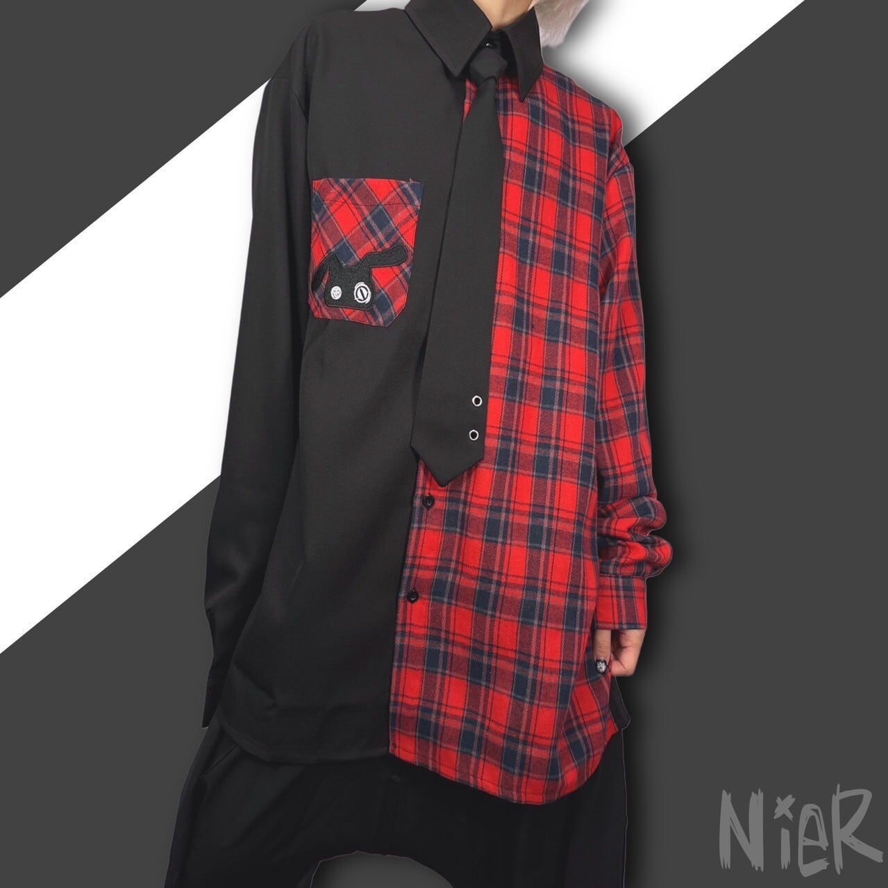 FACE DESIGN TWO-TONE CHECKED SHIRT【ワンタッチネクタイ付き】