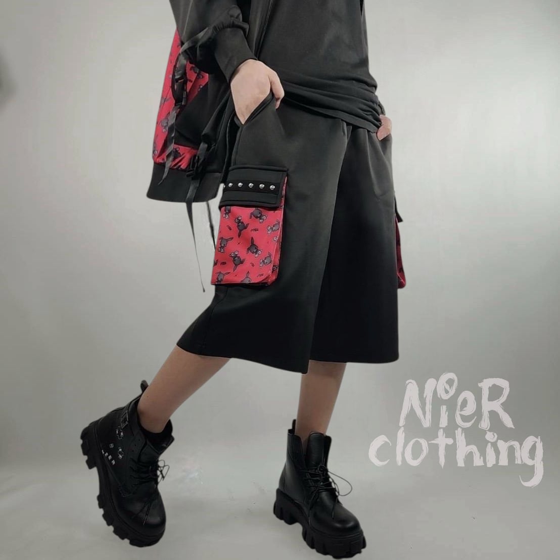 サイド蓋付きポケットにはNIER RABBITがデザインされており遠目からでもビジュアル映え抜群☆