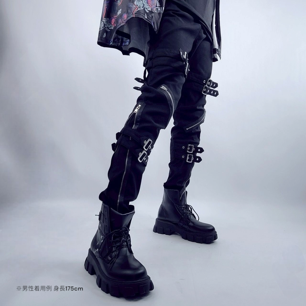 高品質MULTI BUCKLE ZIPスキニーパンツ