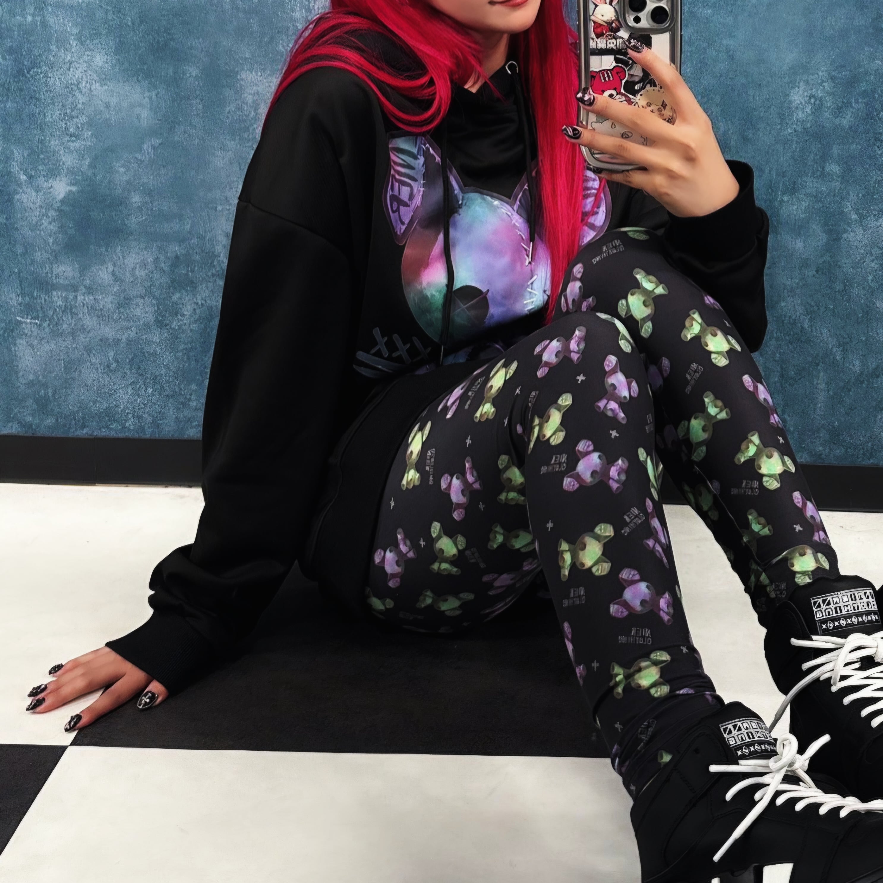 不気味キュートなラビット達が全体にプリントされた、個性爆発の総柄レギンス。