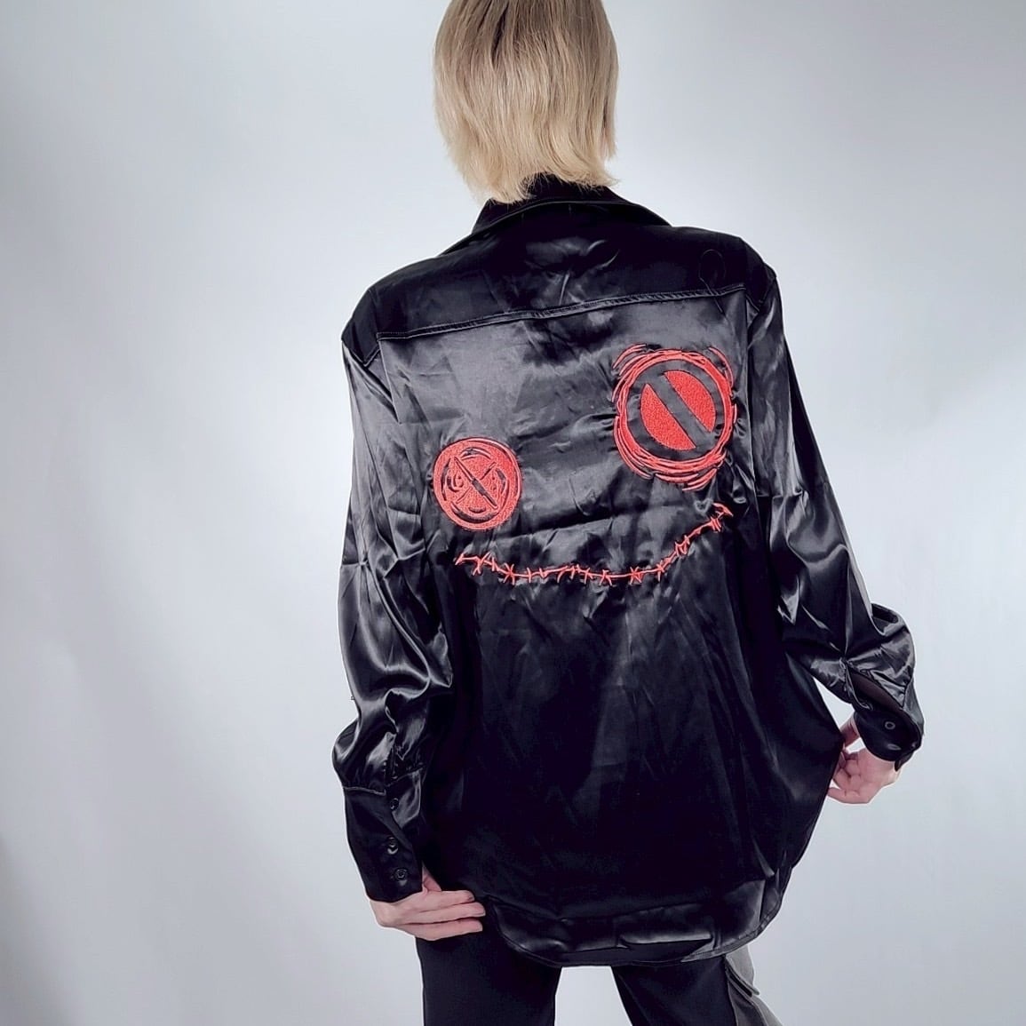 VENOM RED FACE SATIN LONG SHIRT【デザイン刺繍】