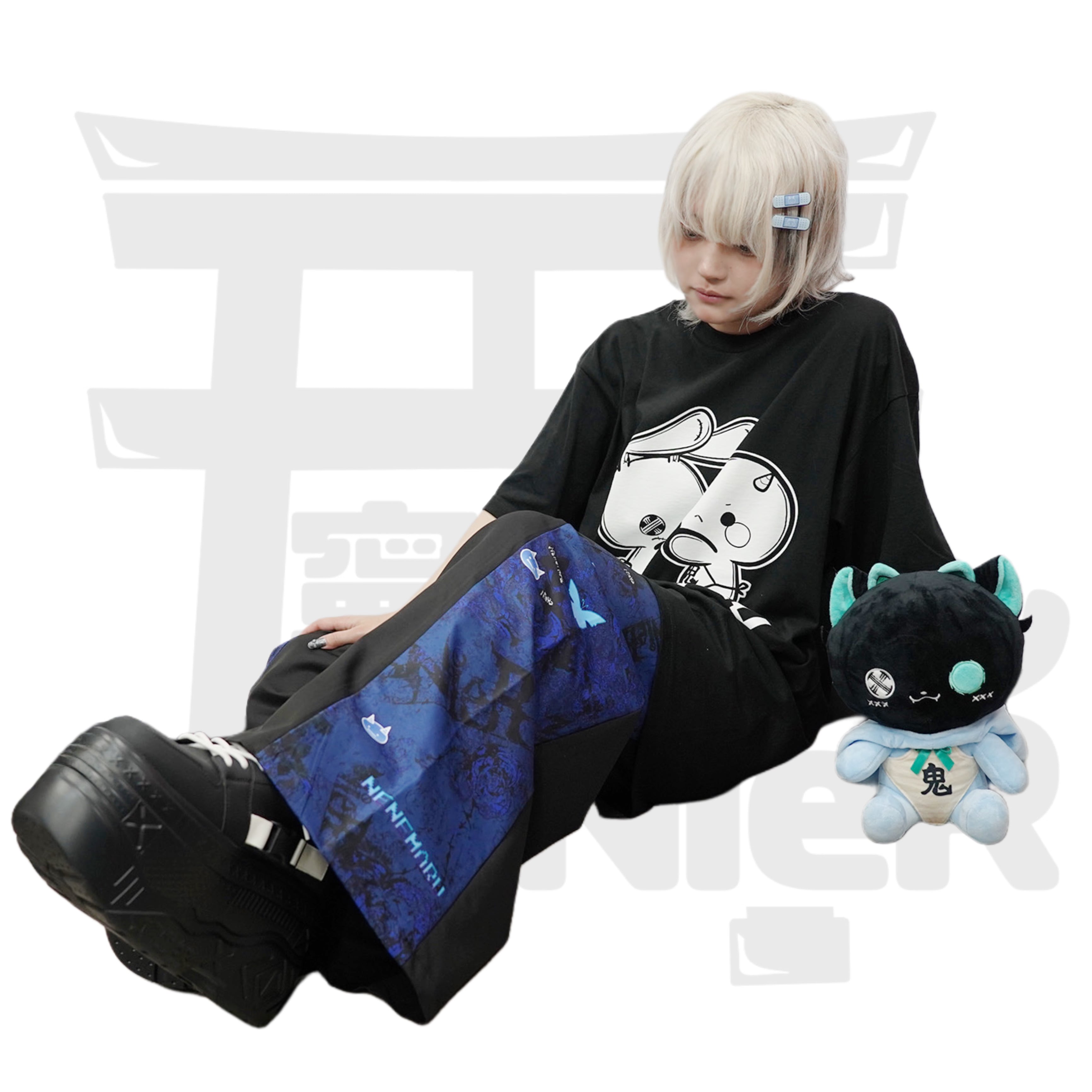 目を惹くデザインながら、どこか抜け感のある優しいブルートーンで、ストリートにも地雷系にもマッチ◎