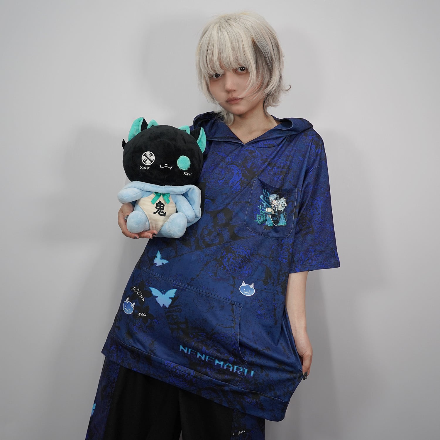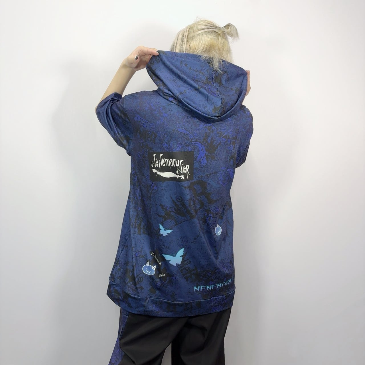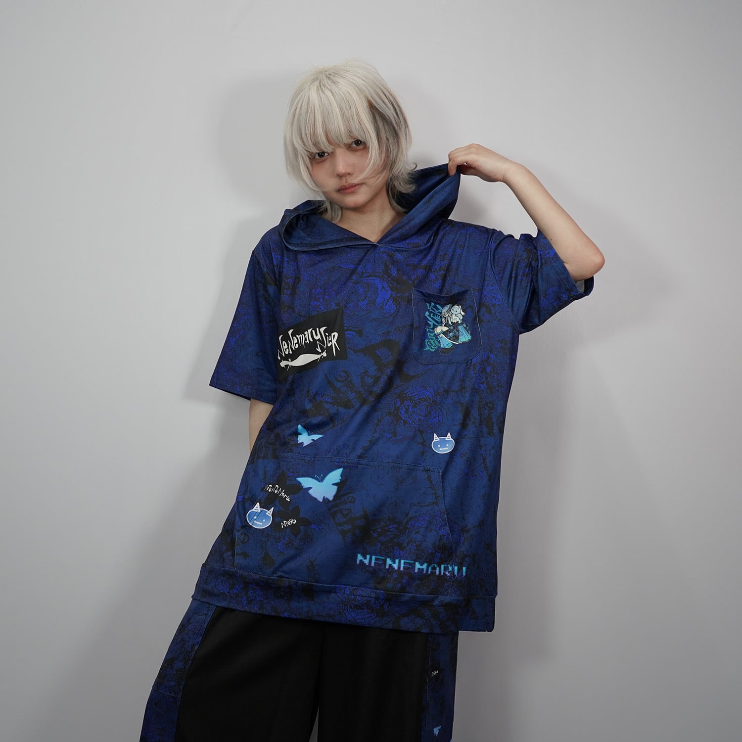 寧々丸×NIERコラボデザイン HALF SLEEVE PULLOVER PARKA [BLUE ROSE×BUTTERFLY]