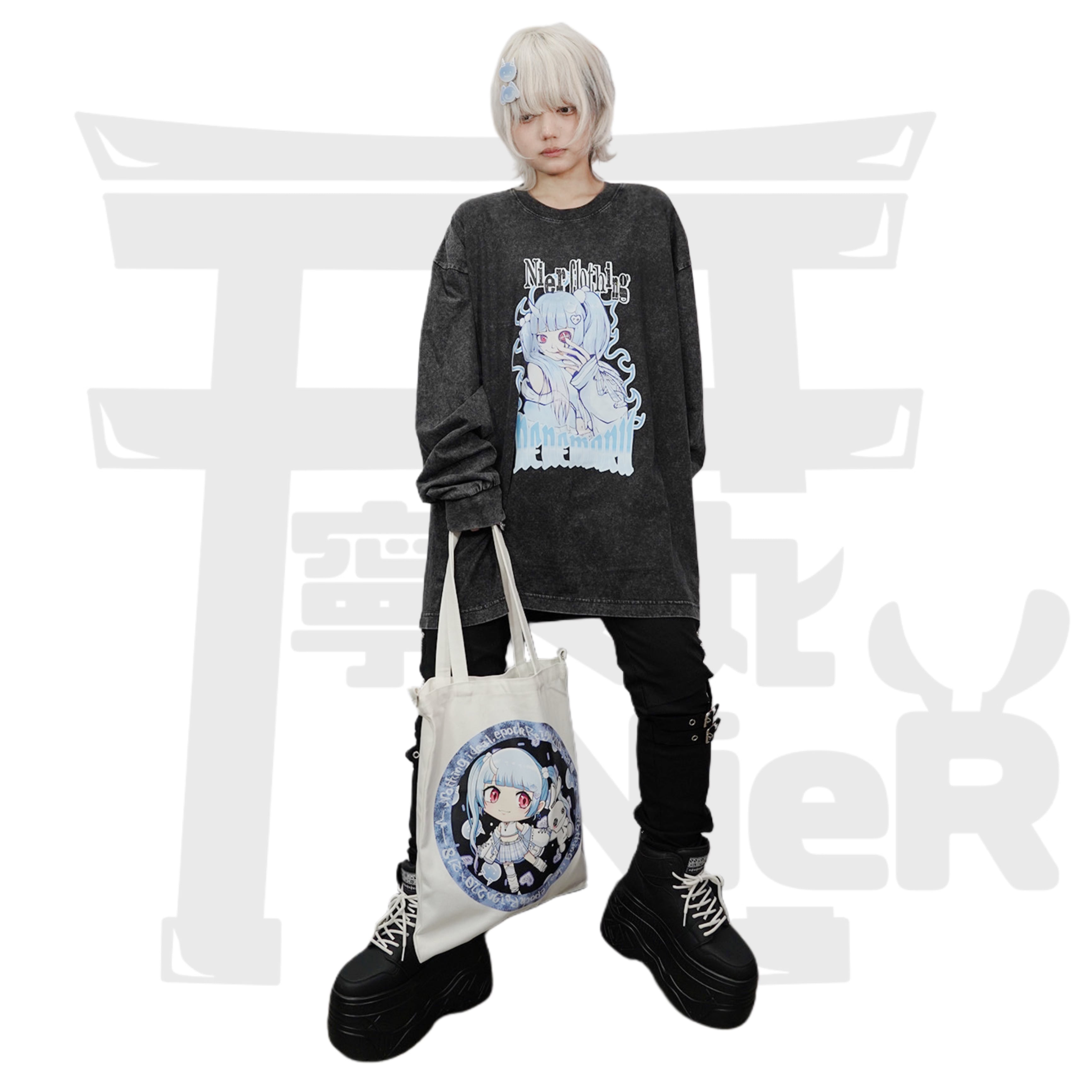 寧々丸×NIERコラボから寧々丸とNIERちゃんが大きくプリントされた、存在感抜群のトートバッグが登場!