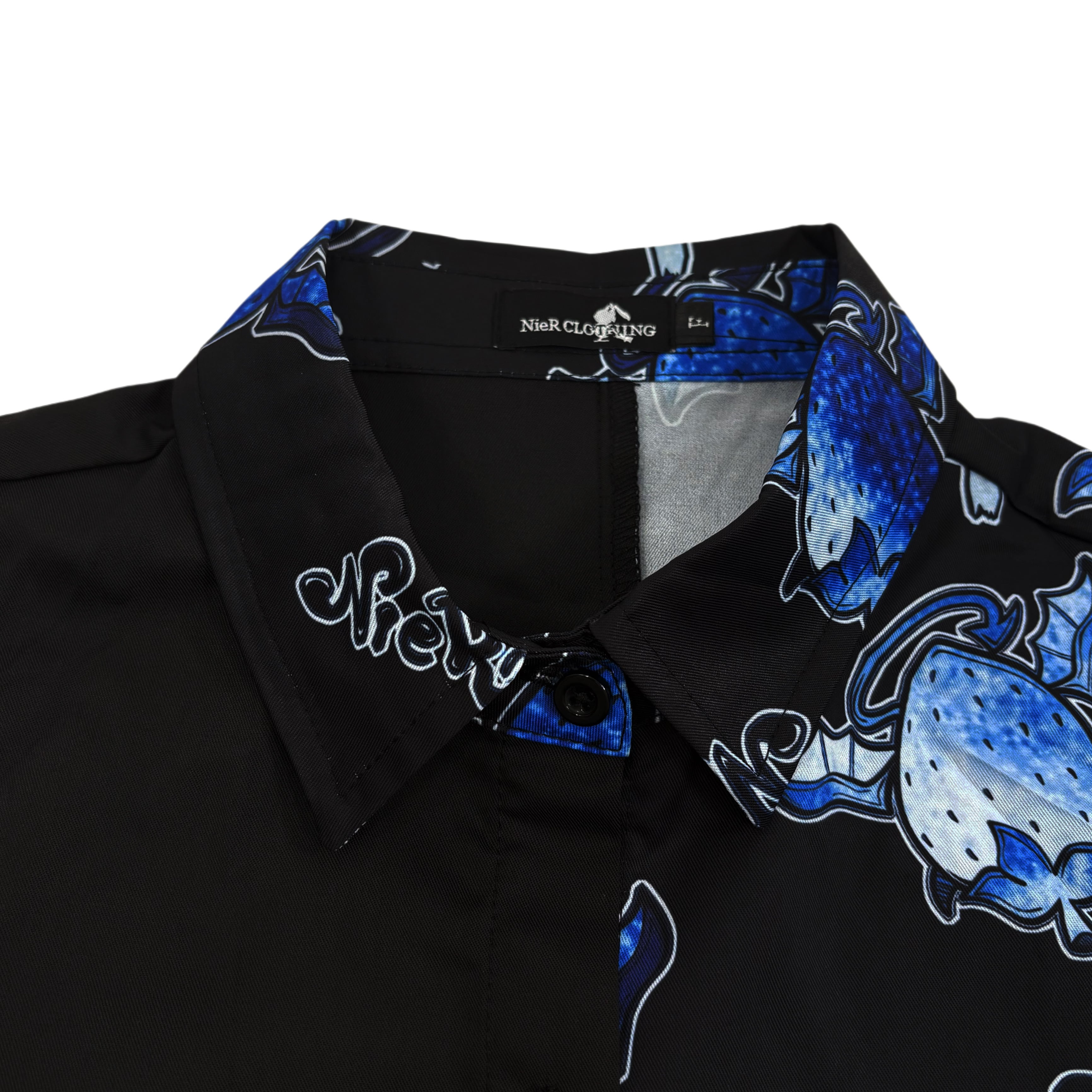 TWO-TONE GRAPHIC LONG SHIRT【BLUE DEVIL STRAWBERRY】