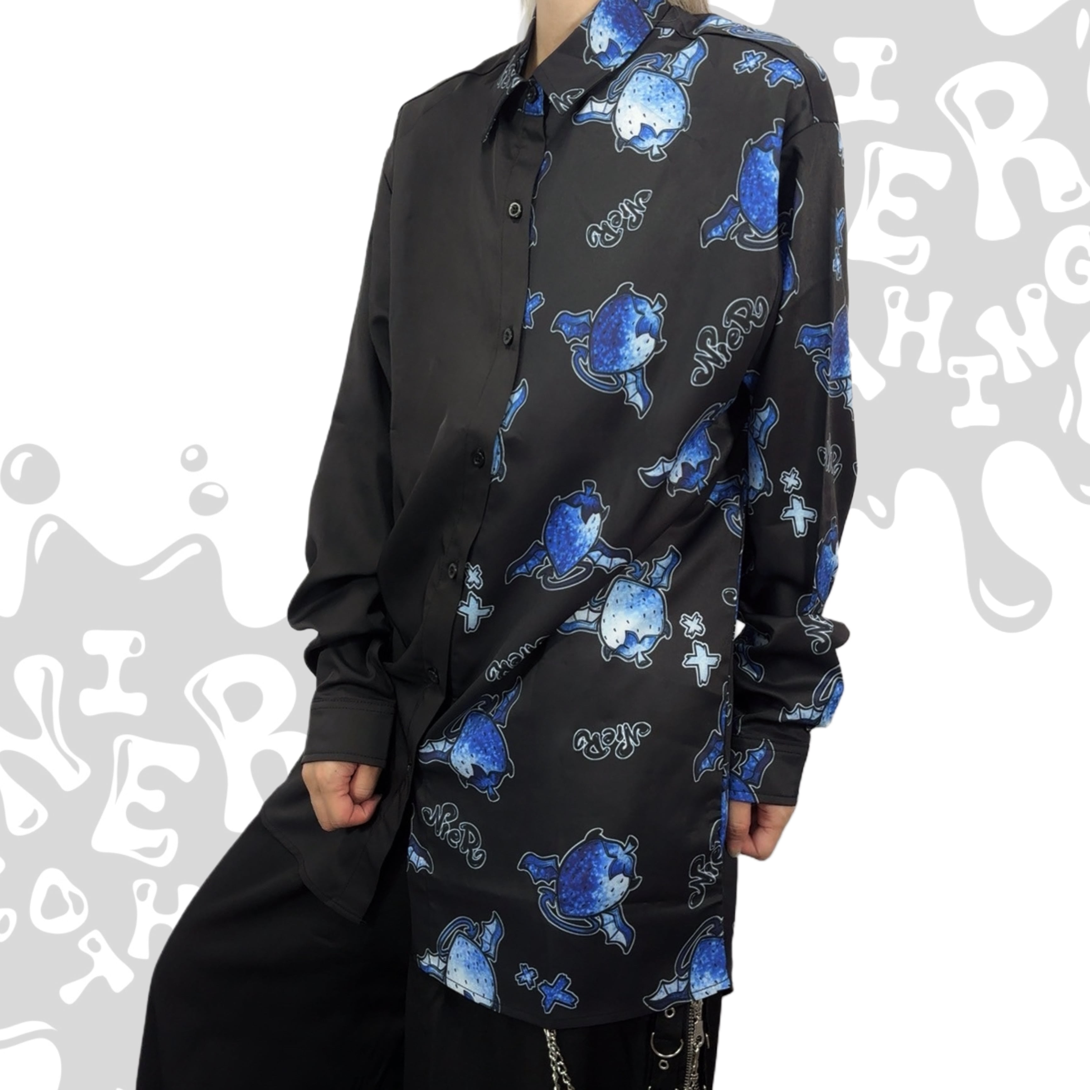 遊び心あふれるNIERオリジナルグラフィックが映える、アシンメトリーデザインのロングシャツが登場☆