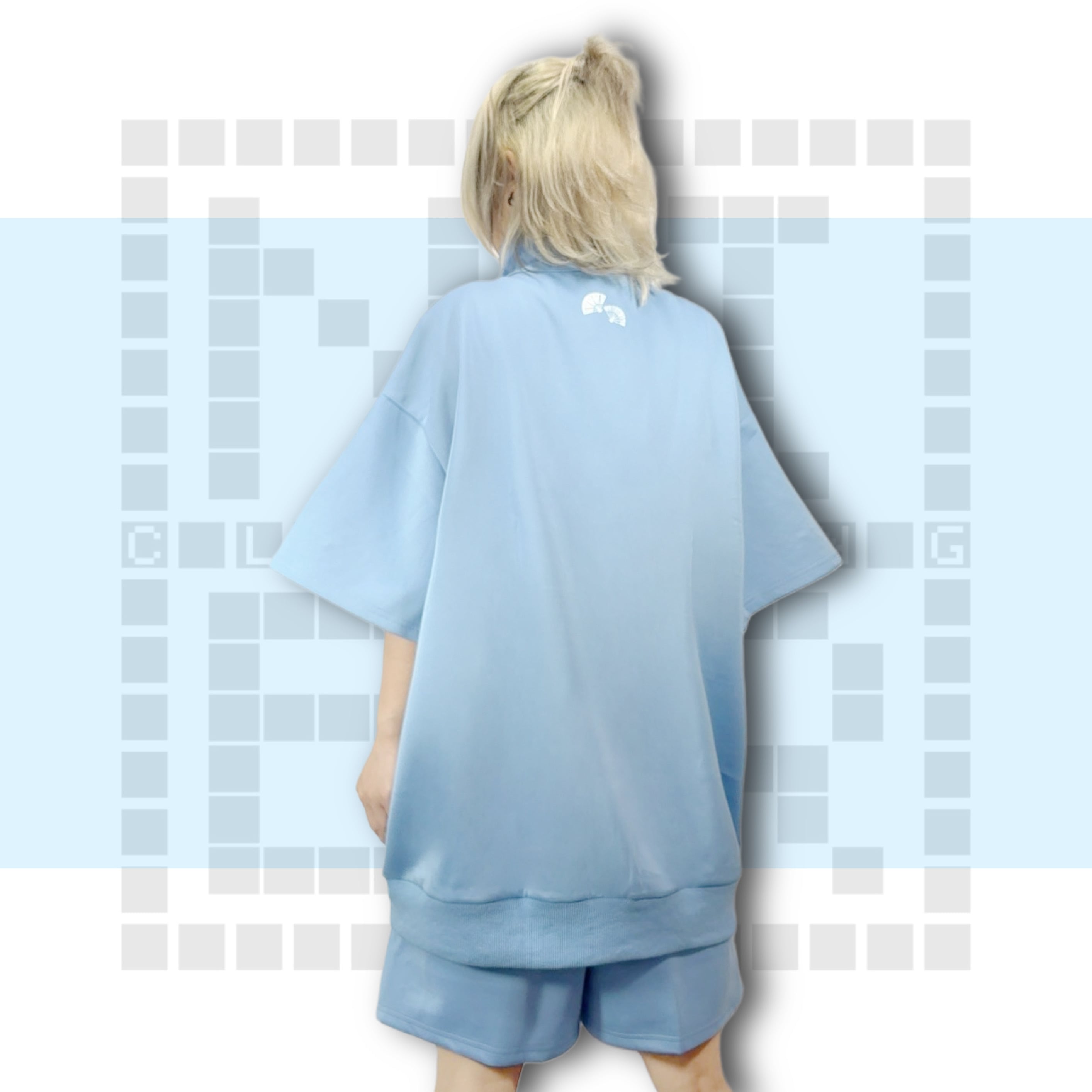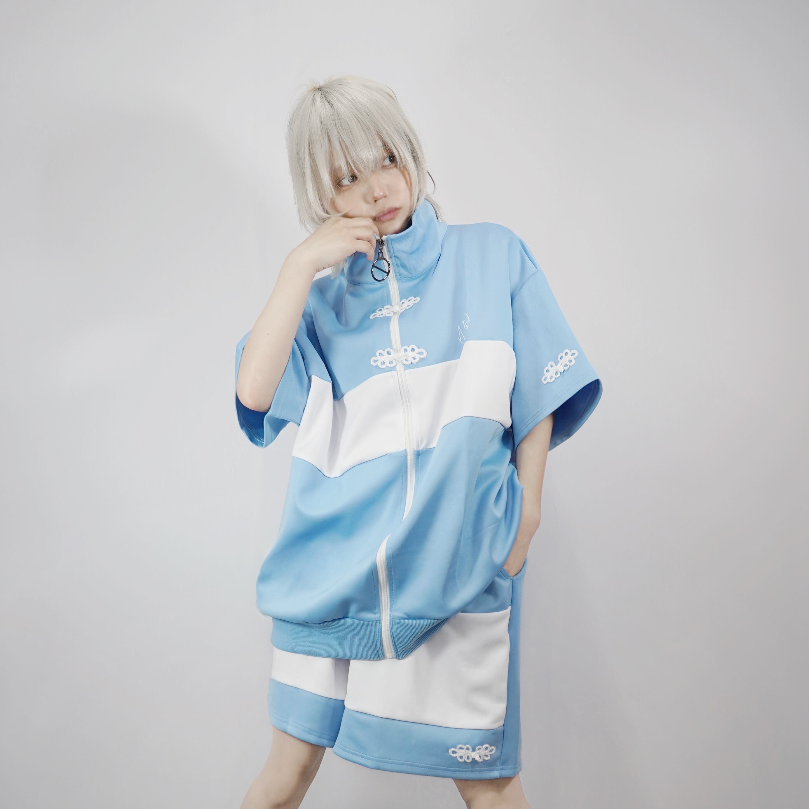 パステルブルーチャイナボタン半袖ZIP OUTER
