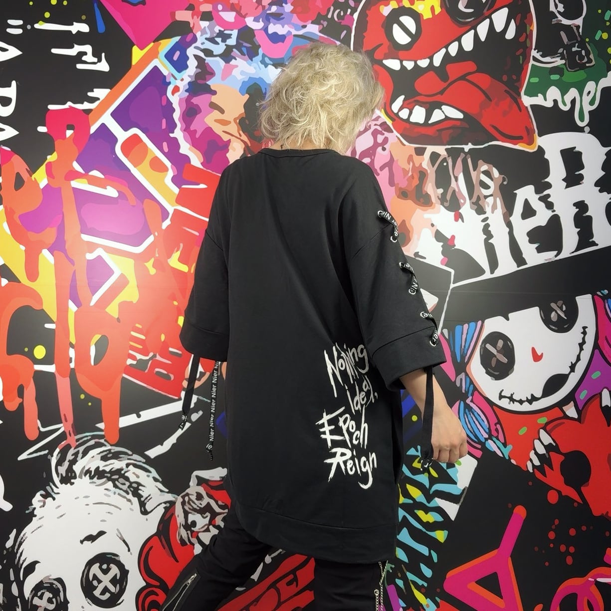 バックには大胆に描かれた【Nothing Ideal Epoch Reign】のメッセージをプリントしております。