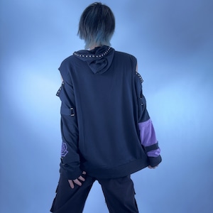 高品質BICOLOR CUT SHOULDER VISUAL LAVENDER HOODIE