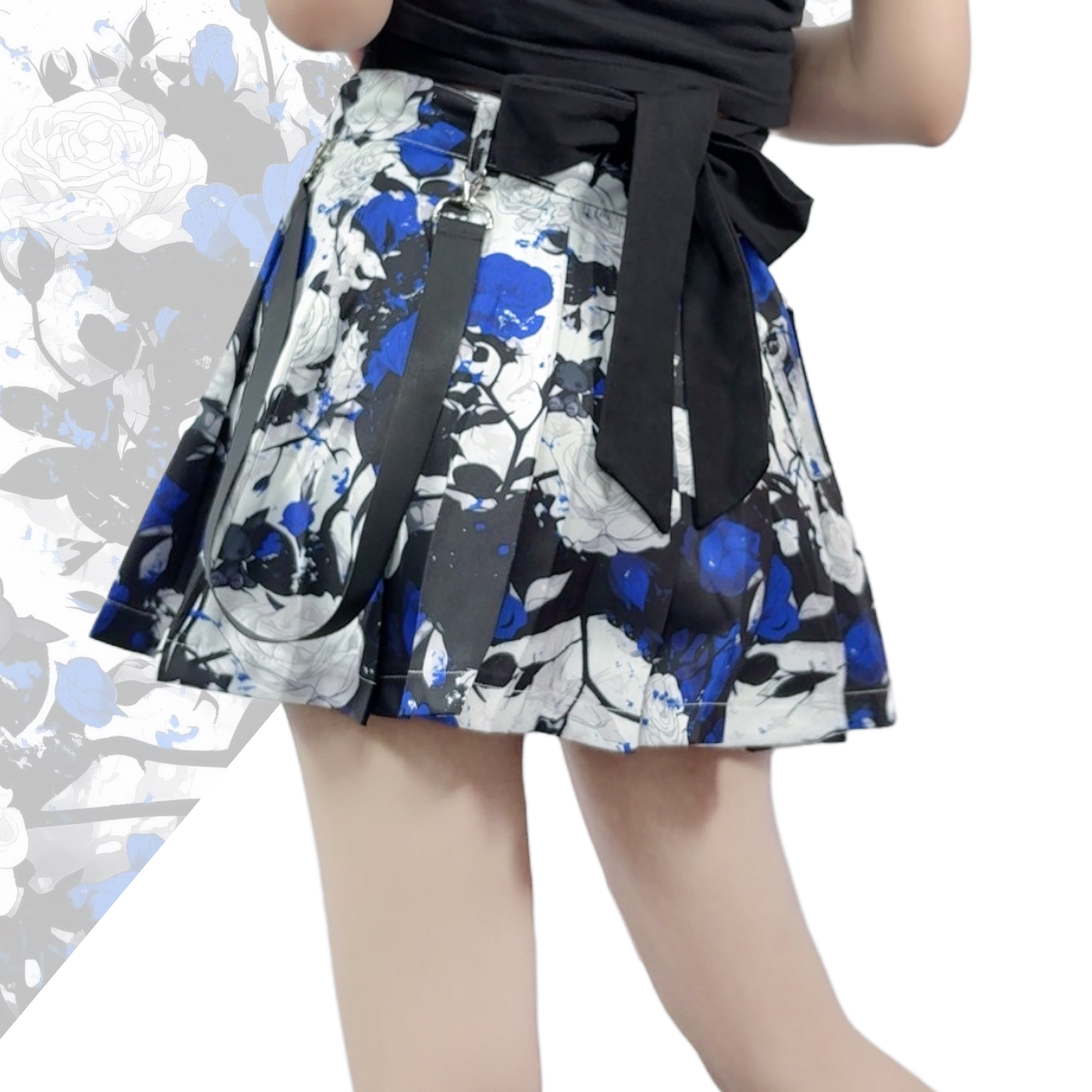 青薔薇×白薔薇×黒ベースのアートフローラルが目を引く、唯一無二の巻きスカートが登場。