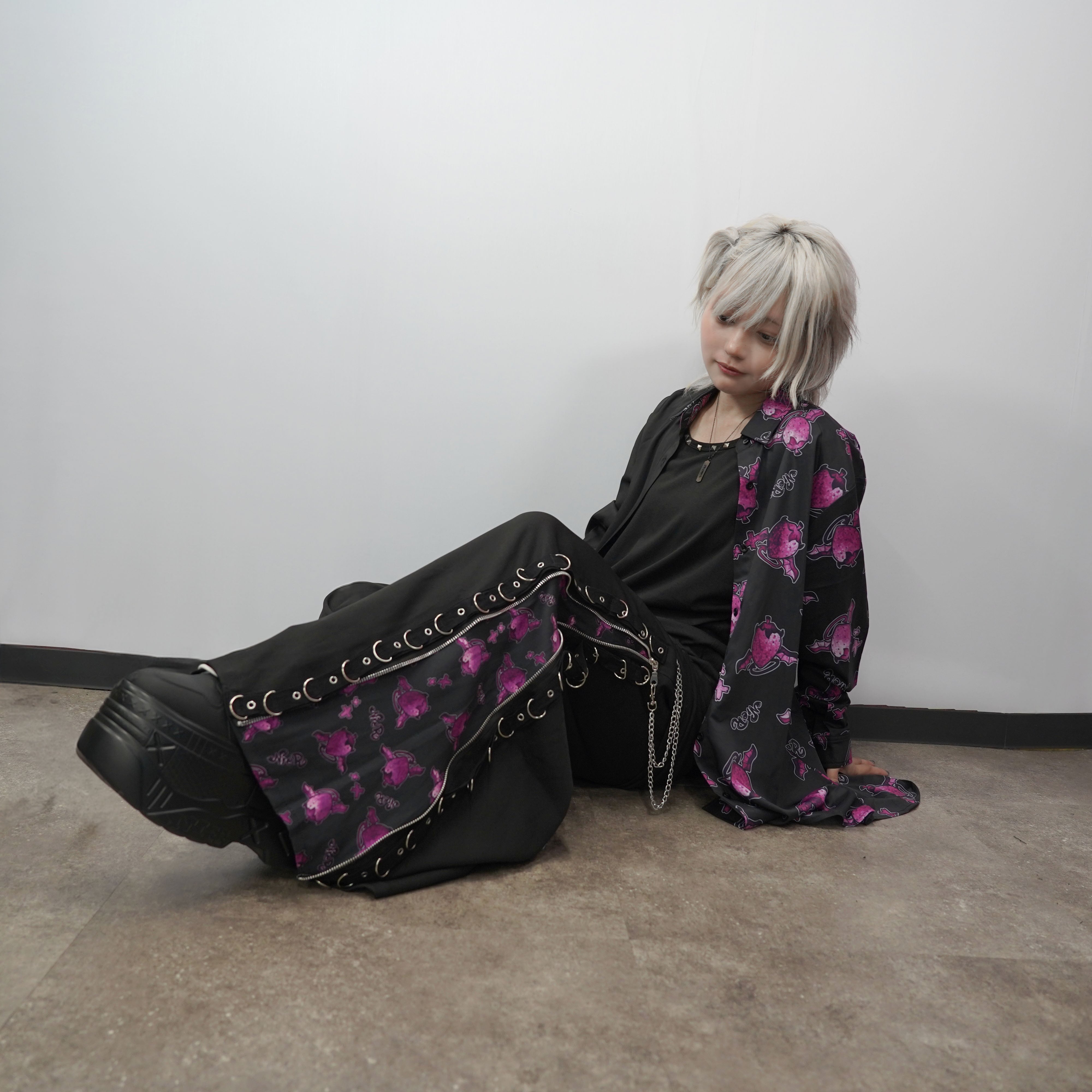 半面にはインパクトあるピンクのDEVIL BERRY柄をあしらい、もう半面には無地ブラックで引き締めた構成となっております。