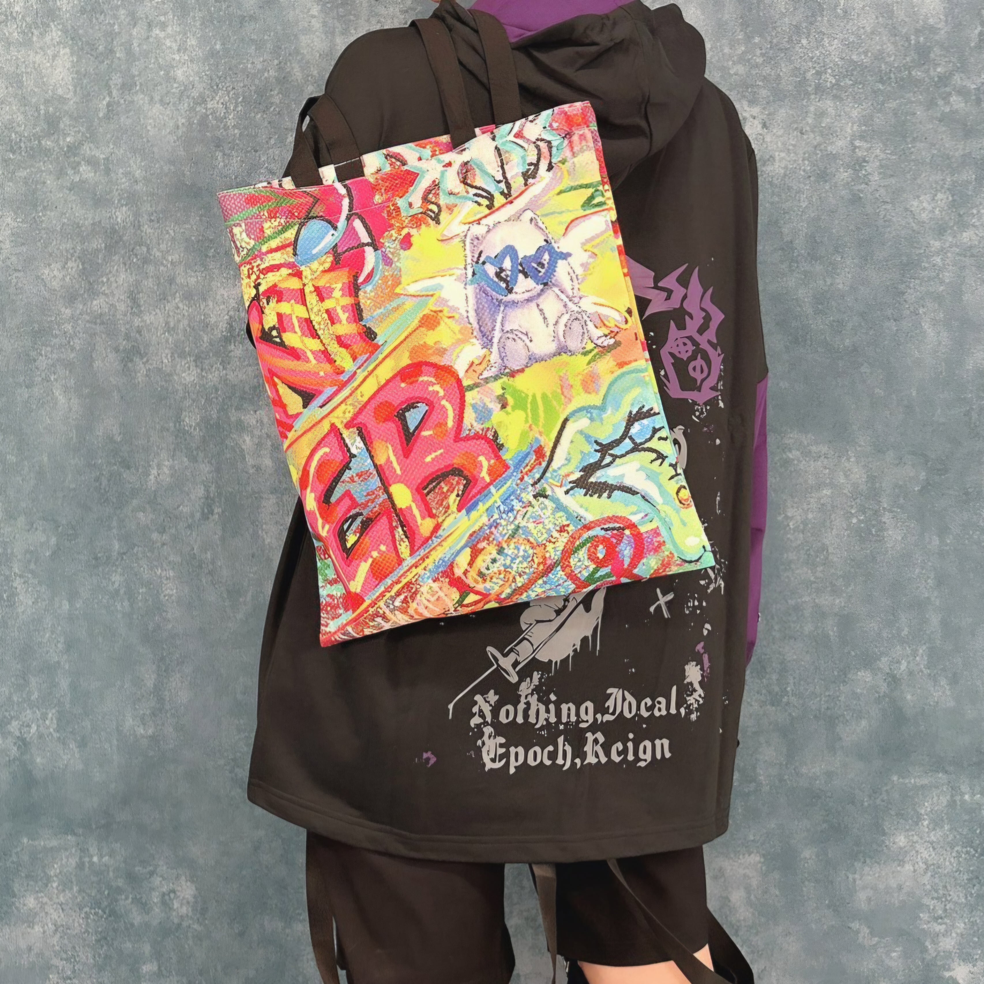 大胆なグラフィティアートに、キュートなハートメガネNIERちゃんが映える個性派トートバッグが登場☆