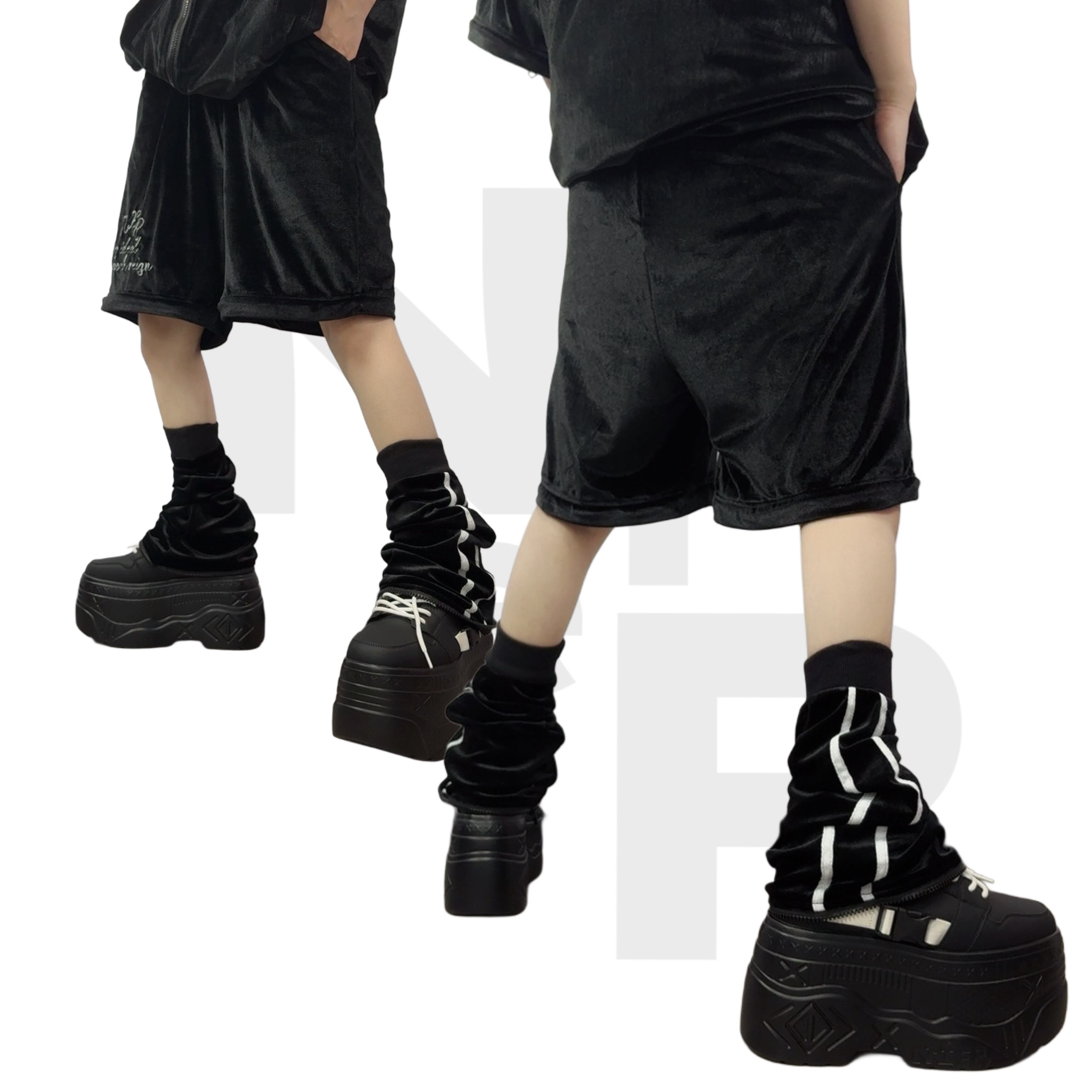 高級感ある光沢ベロア素材に加え、サイドラインとブランド刺繍が存在感を放つデザインのパンツとなっております。
