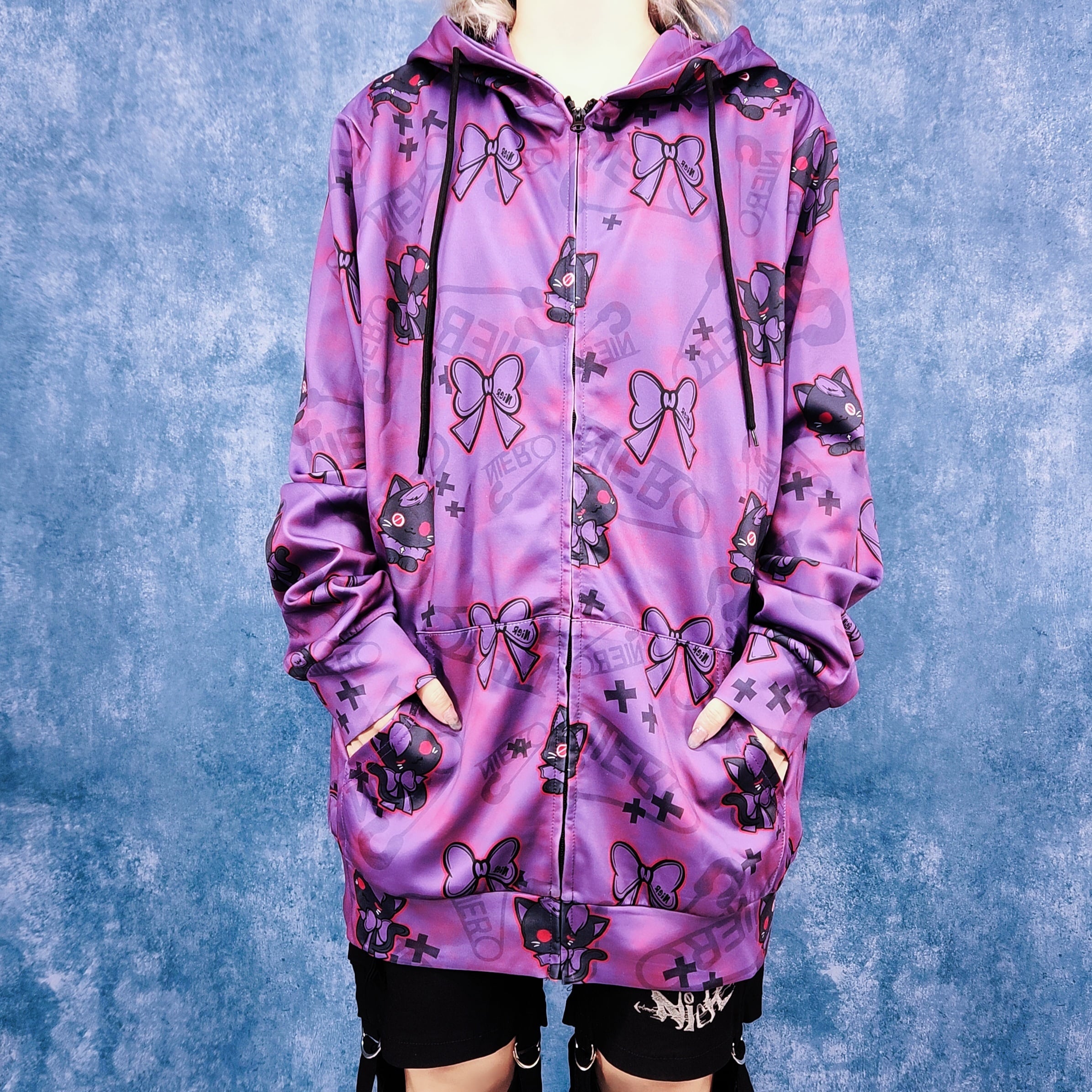 NIERオリジナルキャラクター黒猫とリボンモチーフが全面にデザインされた総柄ライトアウターが新登場。