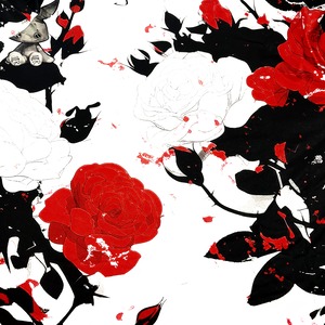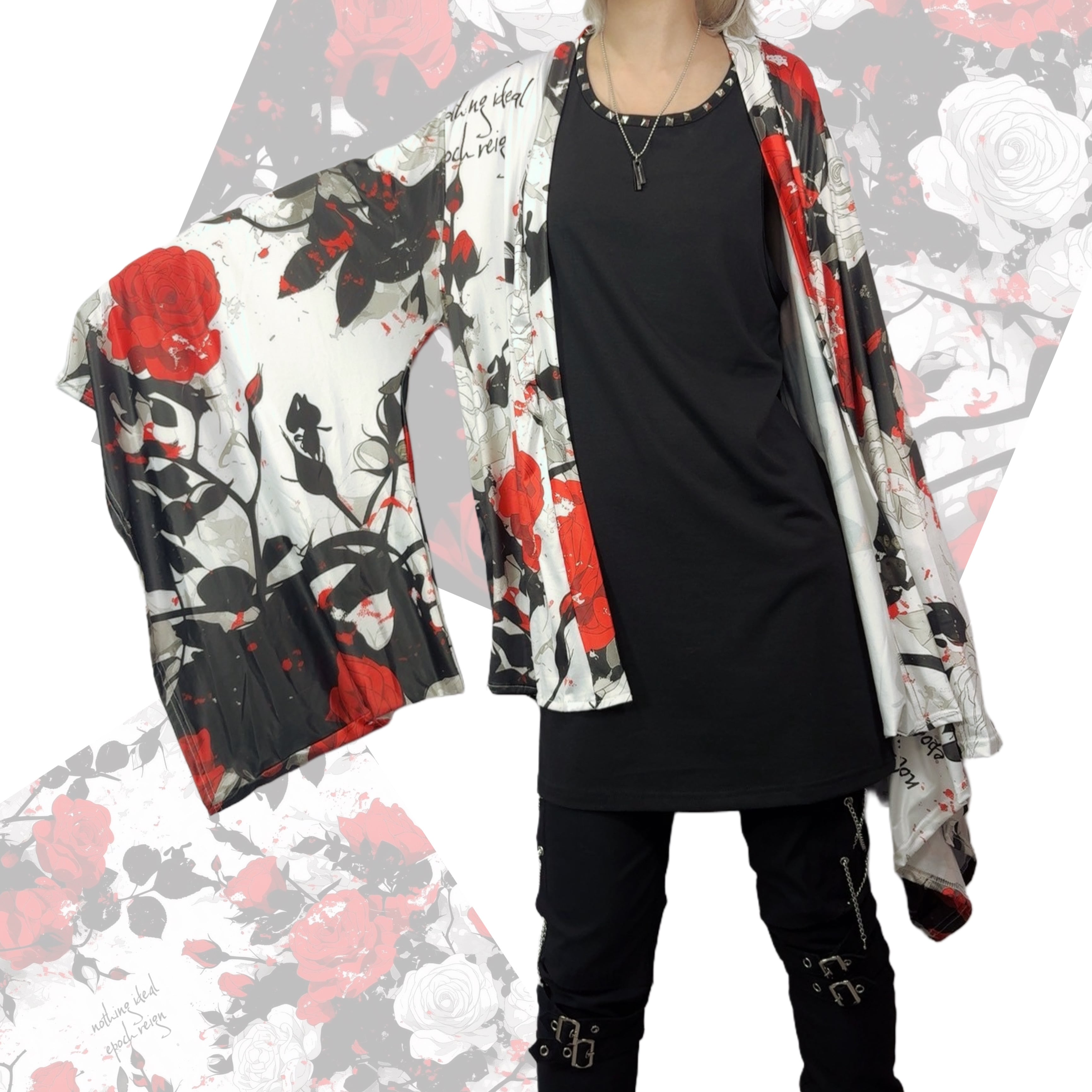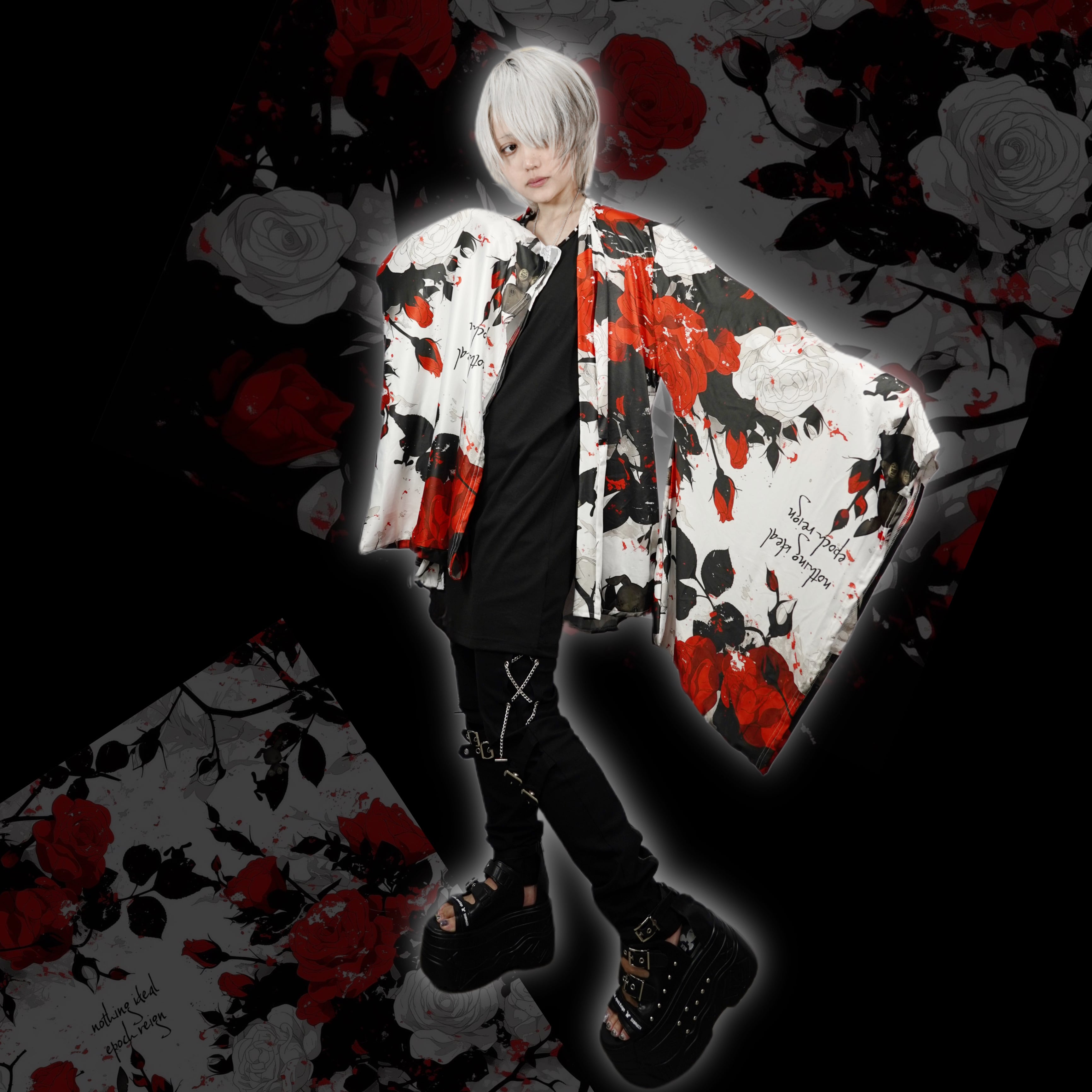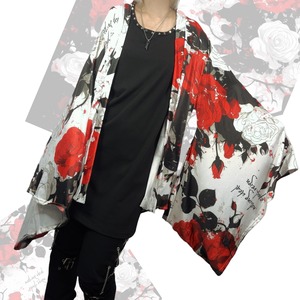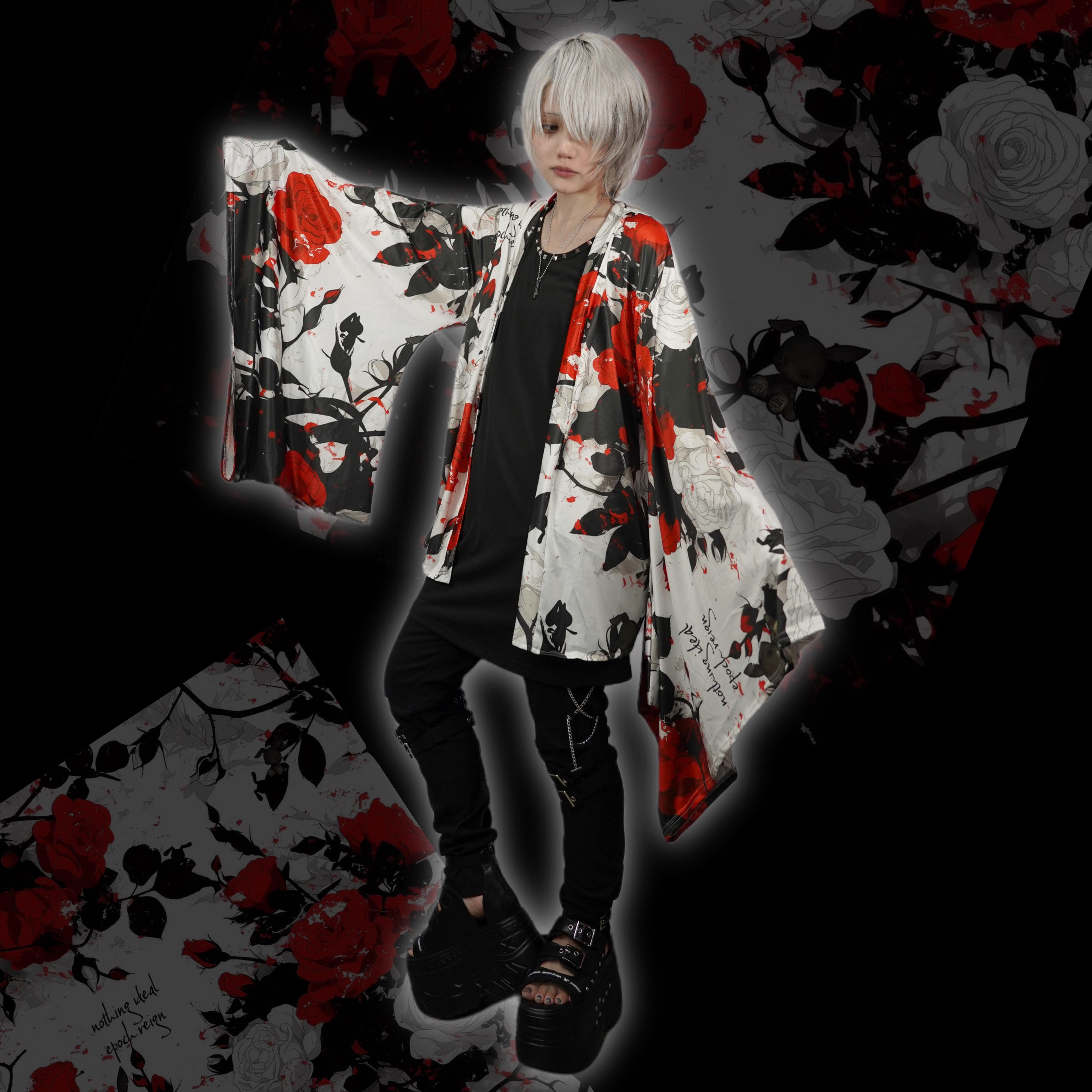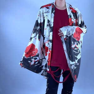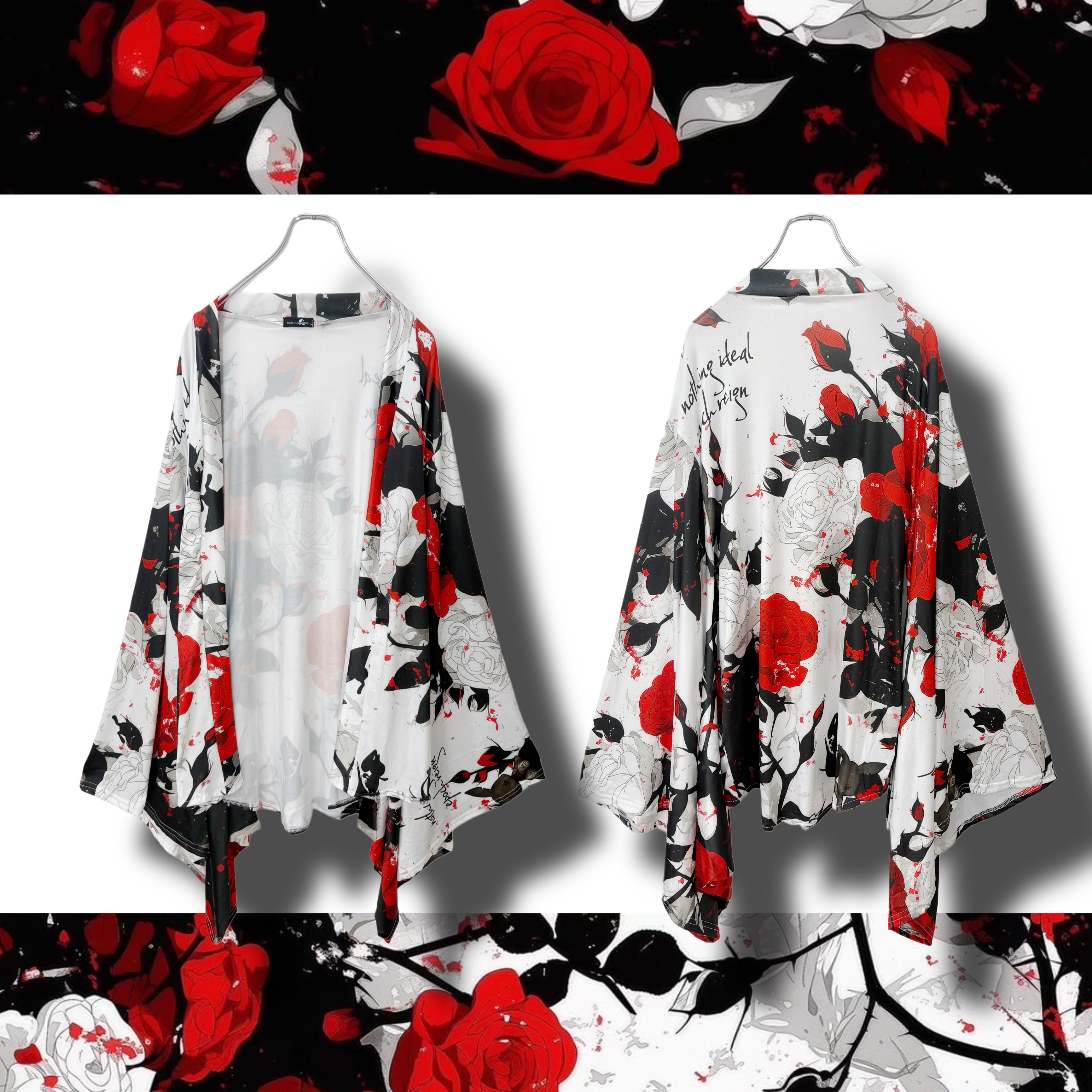 大胆な薔薇デザインが目を惹く、着物袖シルエットの軽やか羽織。