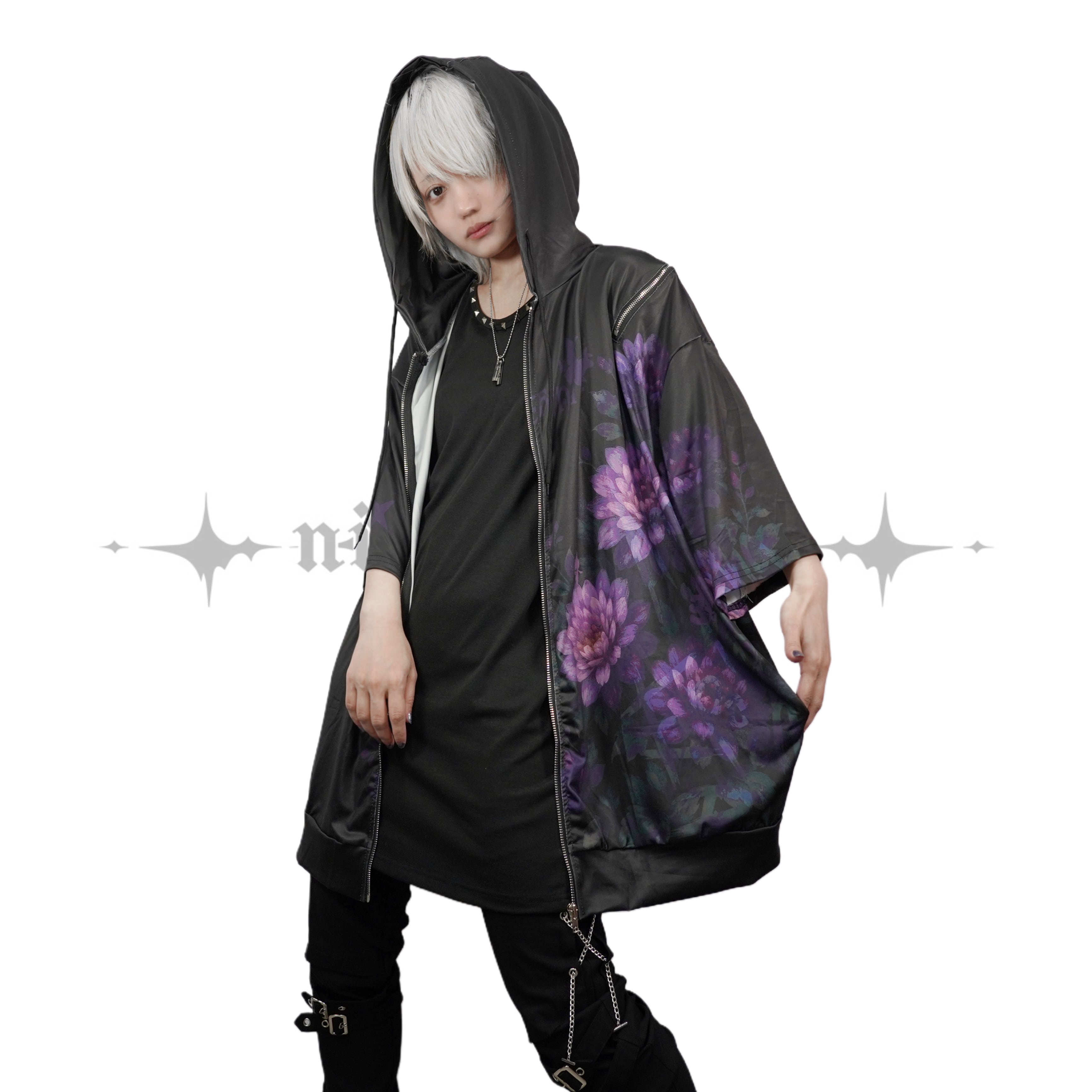 美しく咲き誇る紫の花が全体にデザインされた、印象的なジップアップアウターが登場☆