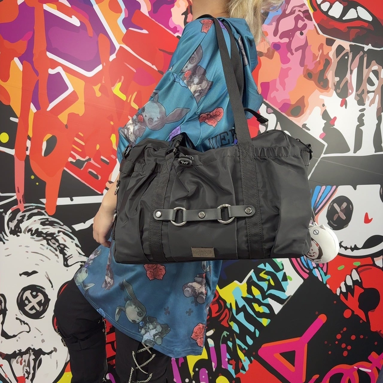 フロントにはオリジナルメタルプレートとリング&ベルト装飾でストリート感のある印象に。