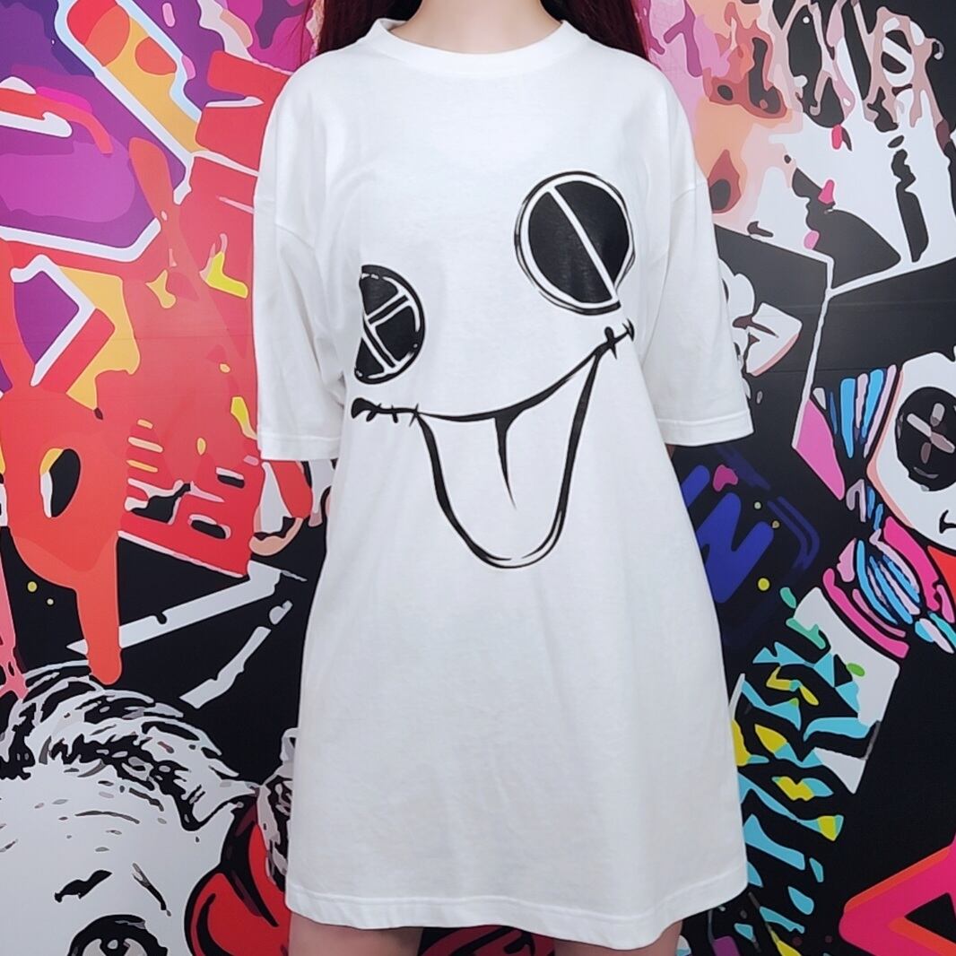 OVERSIZE MOCKING FACE CUTSEW【WHITE】