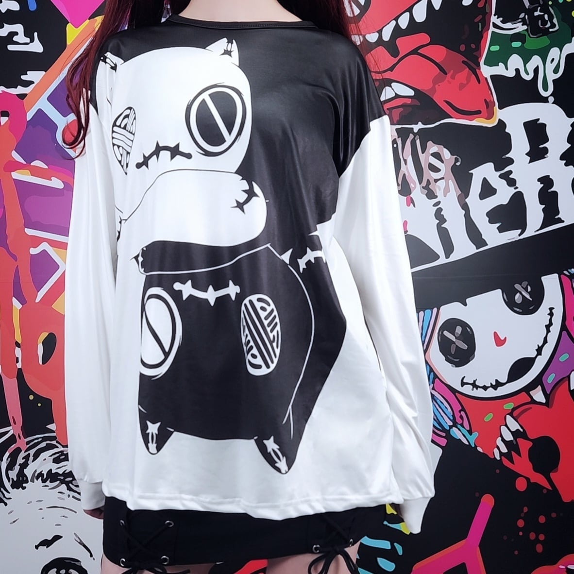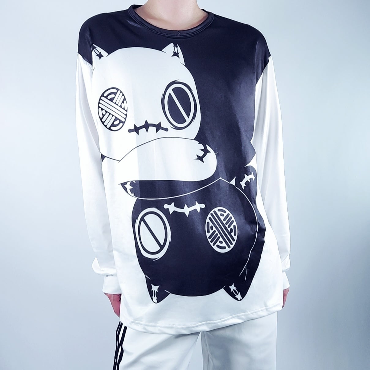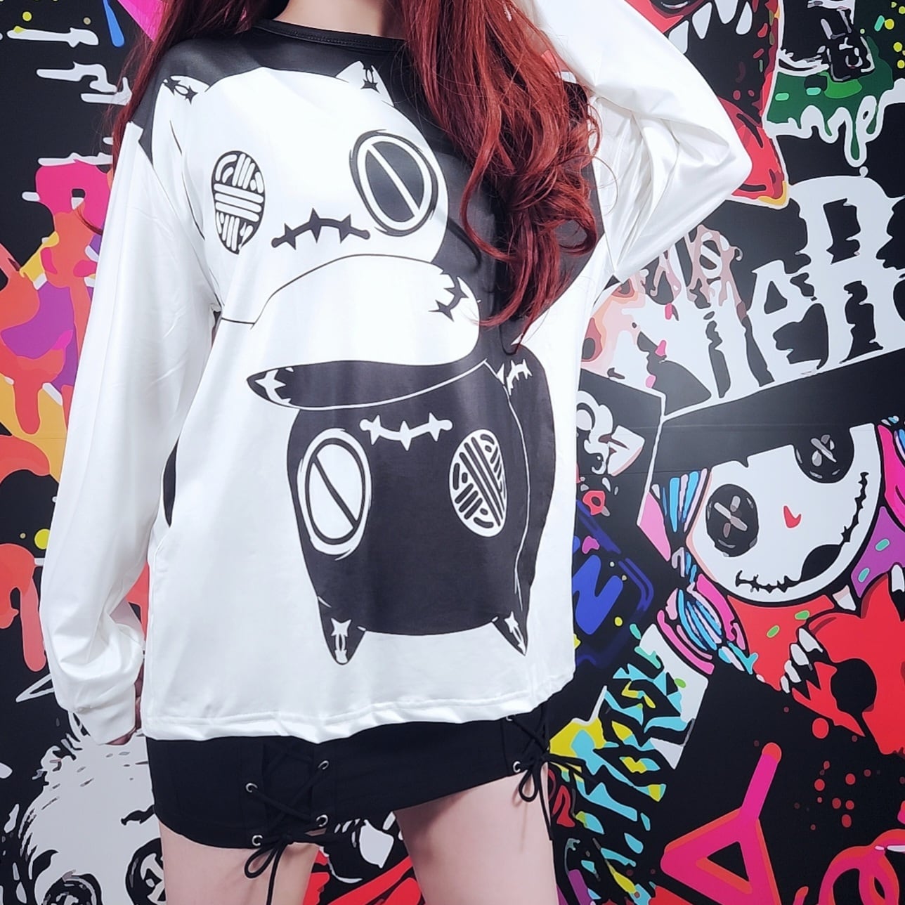 白と黒、表と裏──ふたりのNIERちゃんが寄り添う姿を、大胆なグラフィックで落とし込んだロングスリーブとなっております。