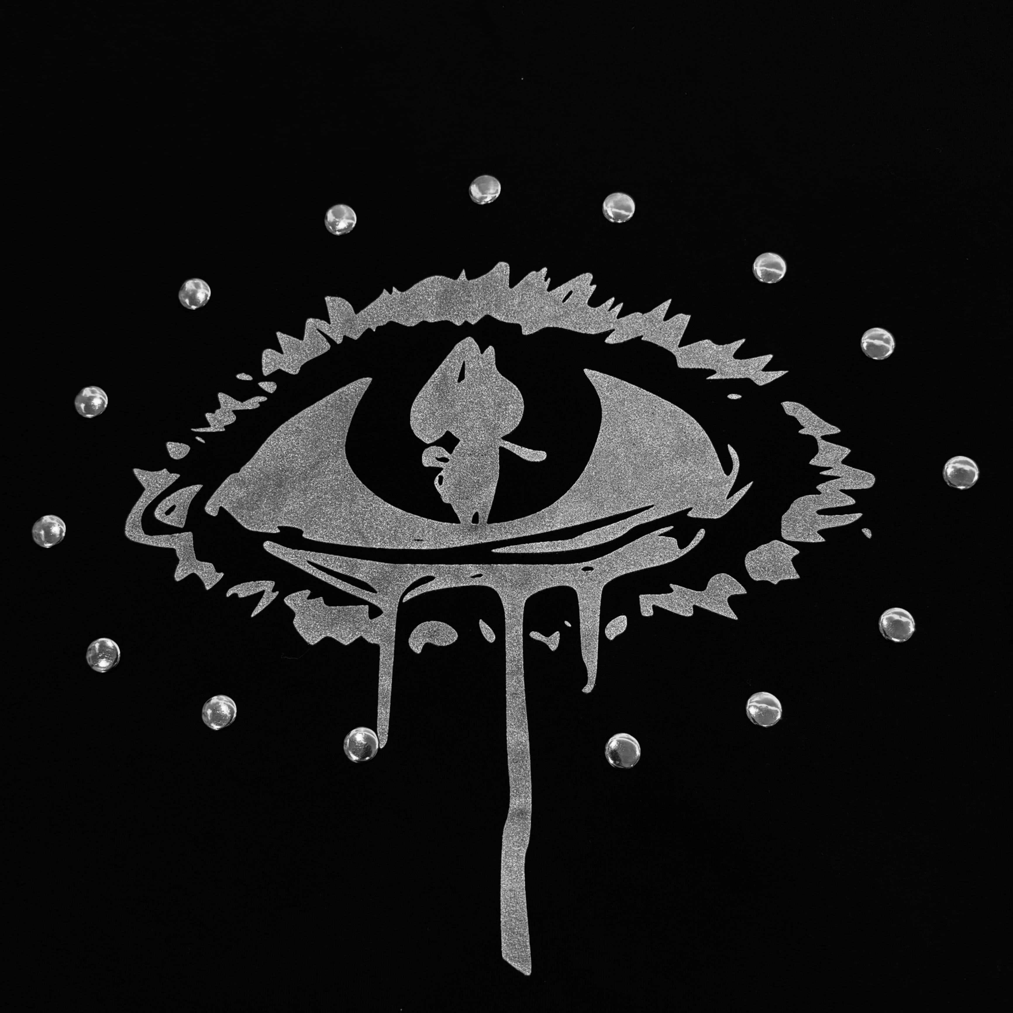 背面には滴るような瞳のグラフィックを大胆にプリント。