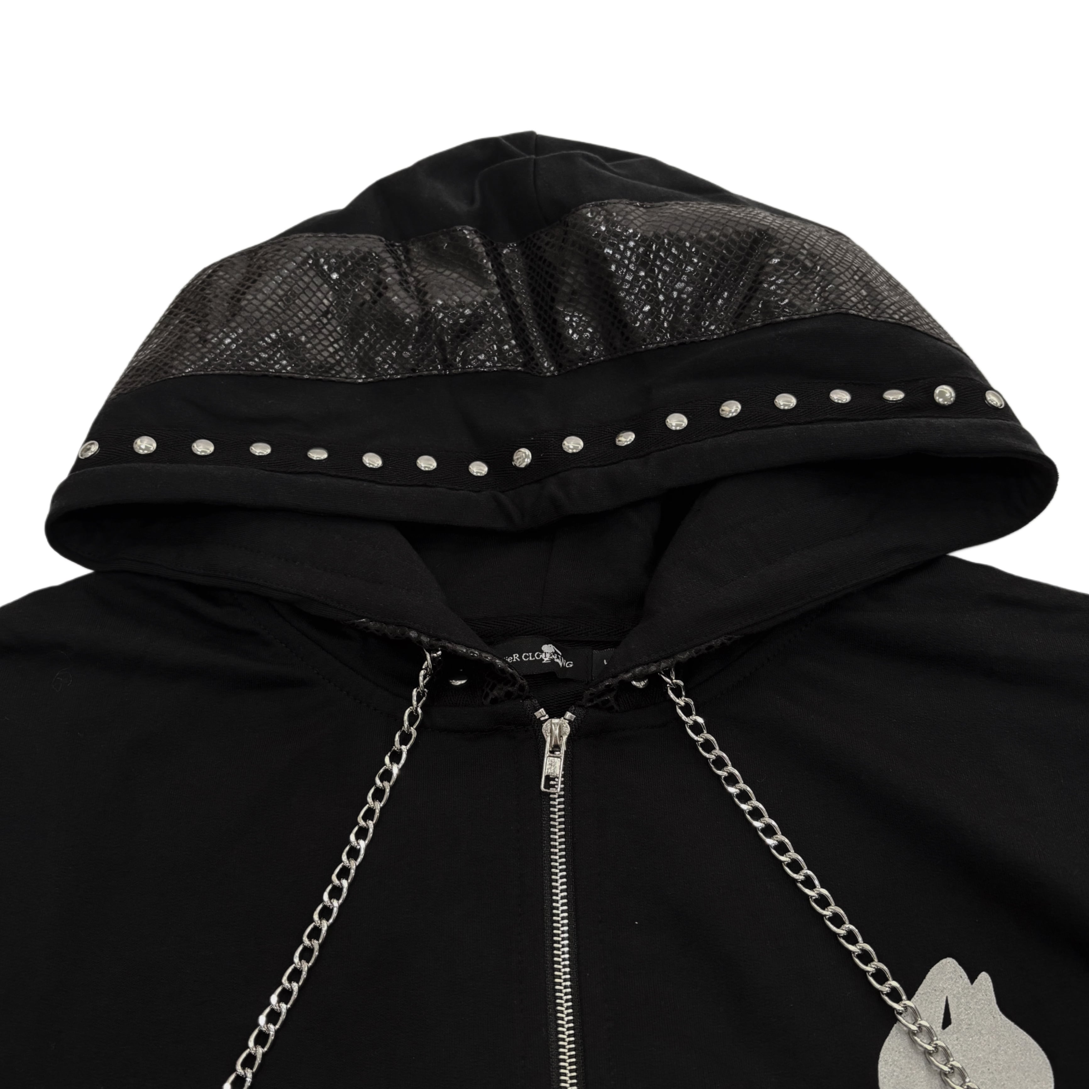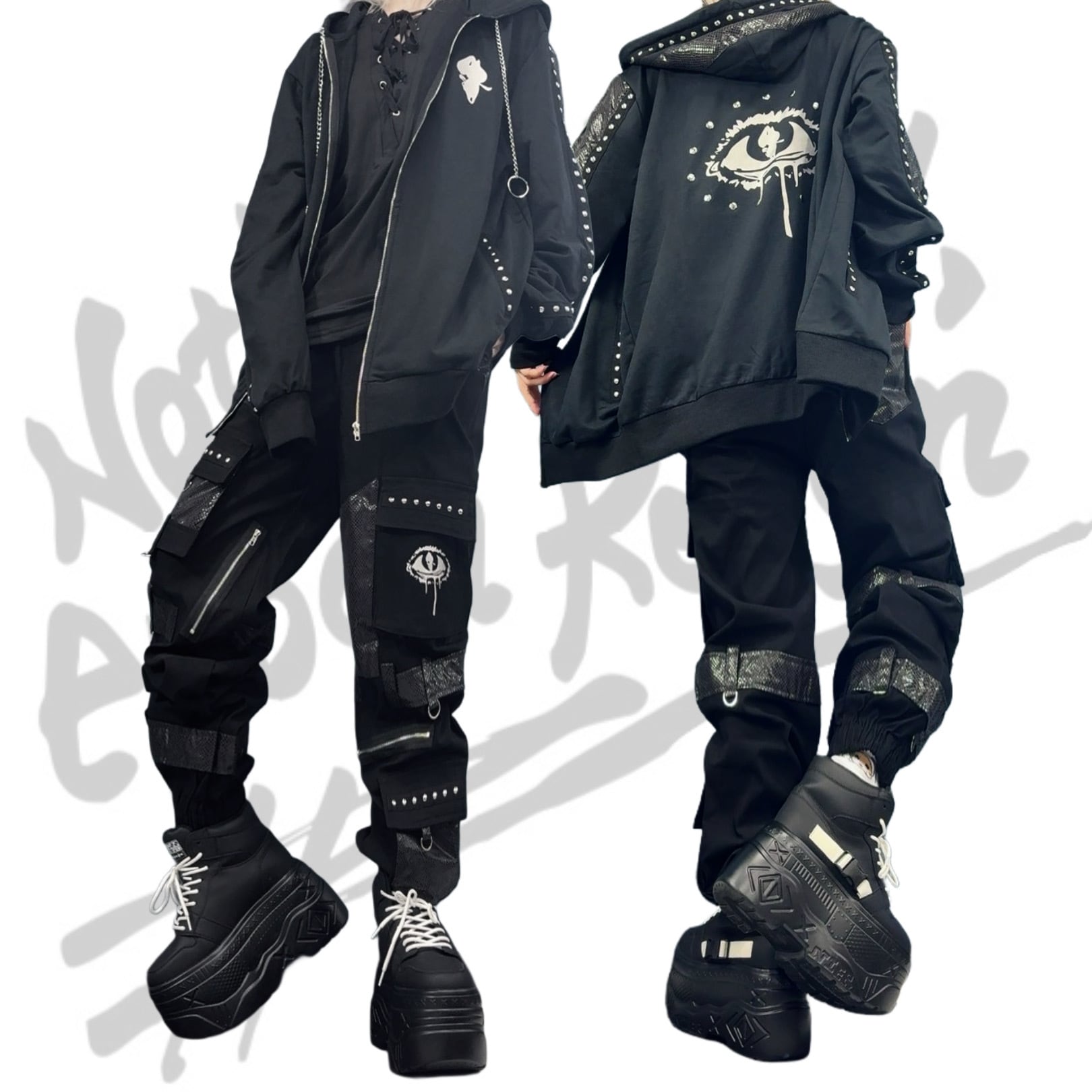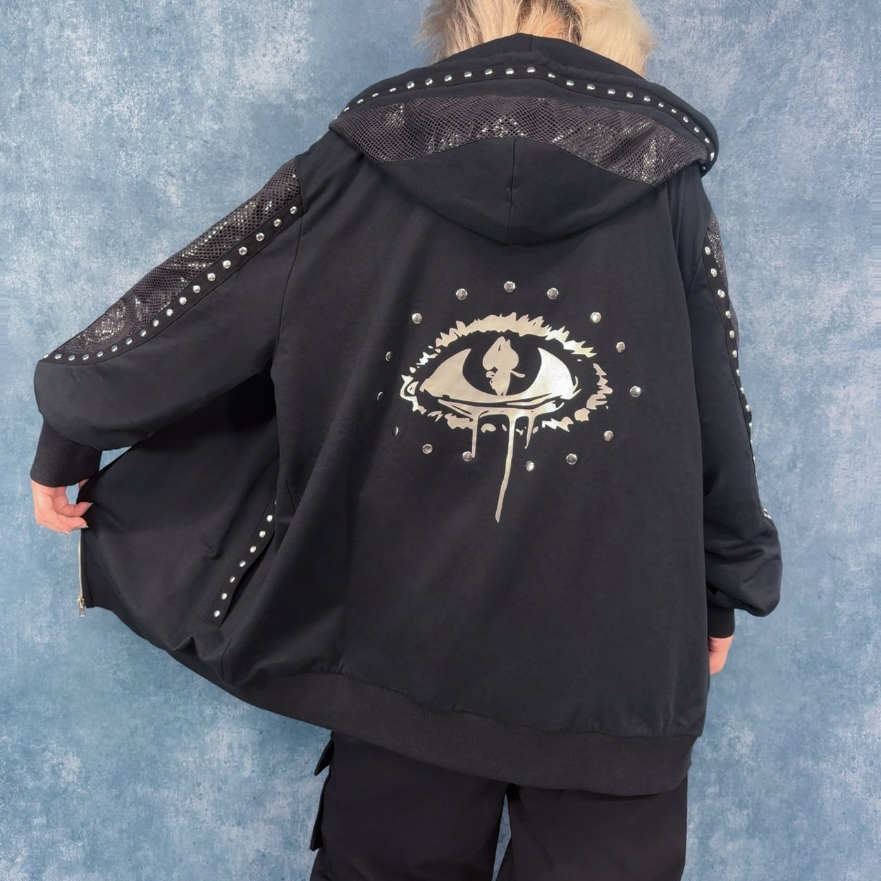 《2nd-3rd DAY限定目玉大特価》高品質異素材MIX EYE×STUDS ZIP OUTER【BLACK】