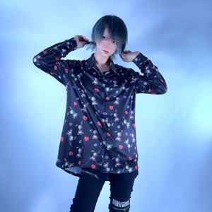 愛らしくもどこか影のあるデザインの鮮やかな薔薇が舞う総柄シャツになります。