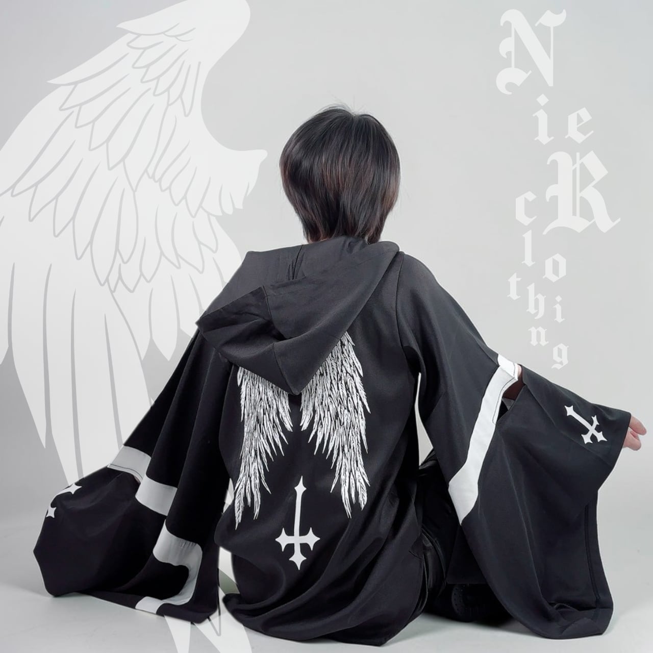 背面には翼とクロスのビッグプリントを施し、幻想的かつ神秘的な存在感を演出。