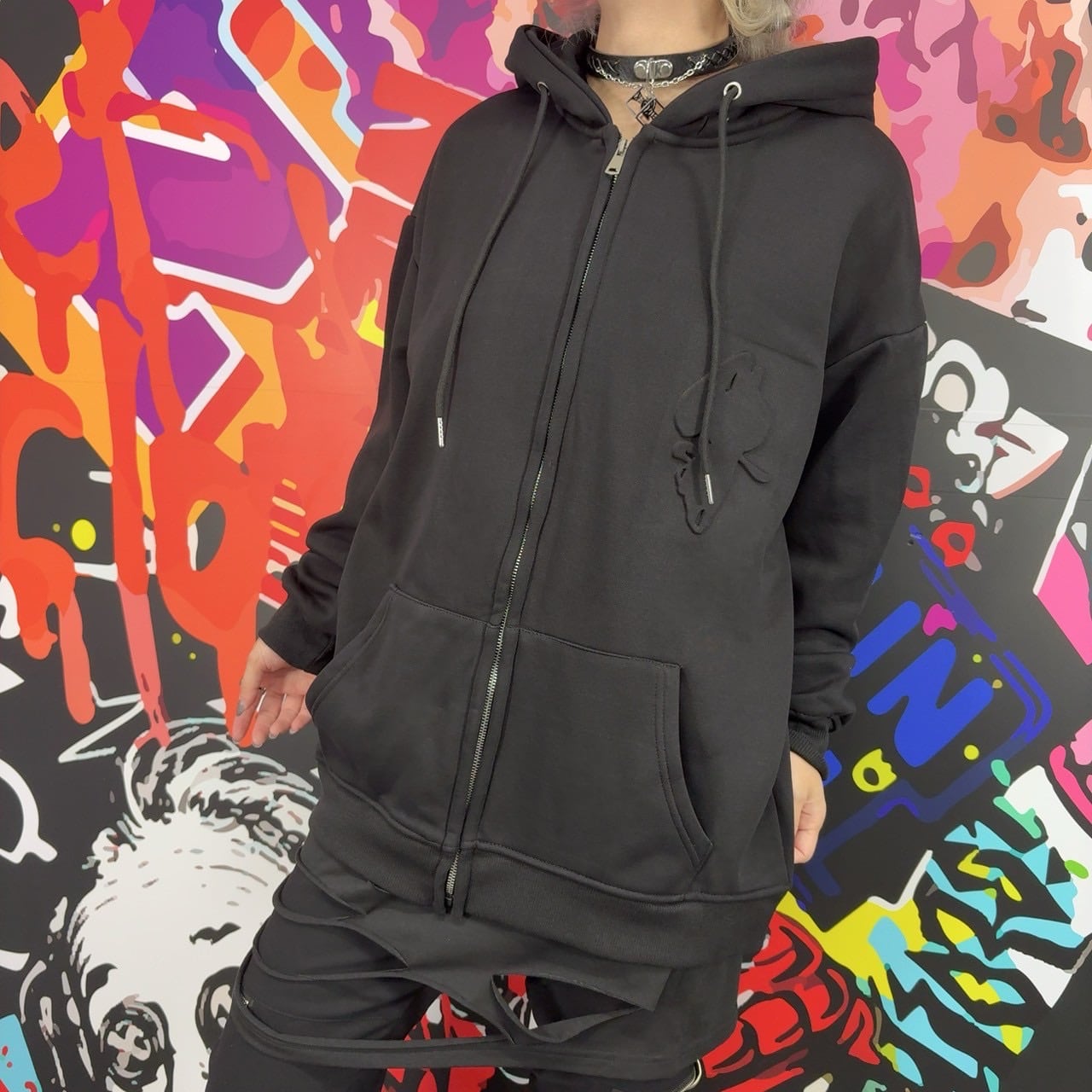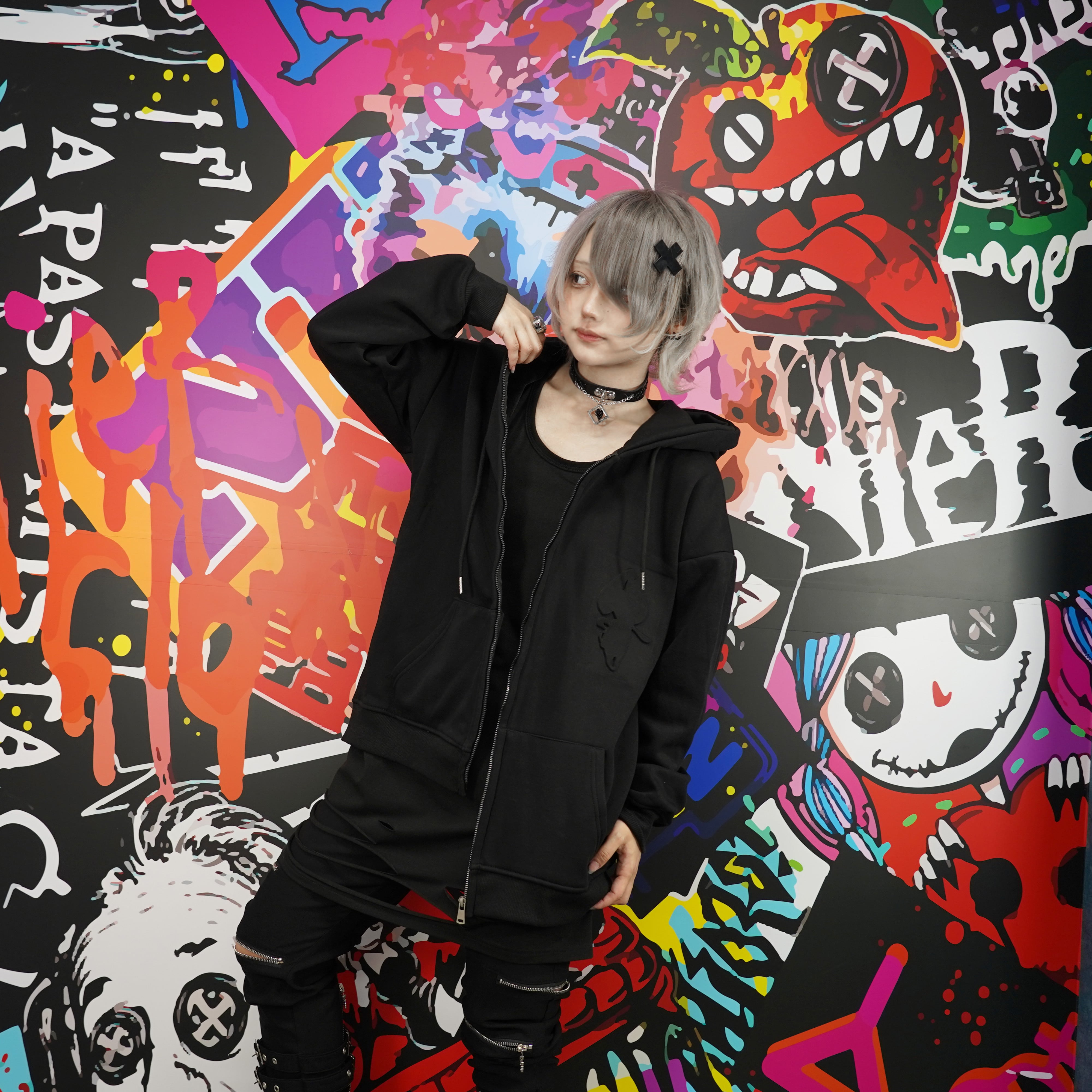 シンプルな中に個性を詰め込んだブラックジップパーカーが登場。