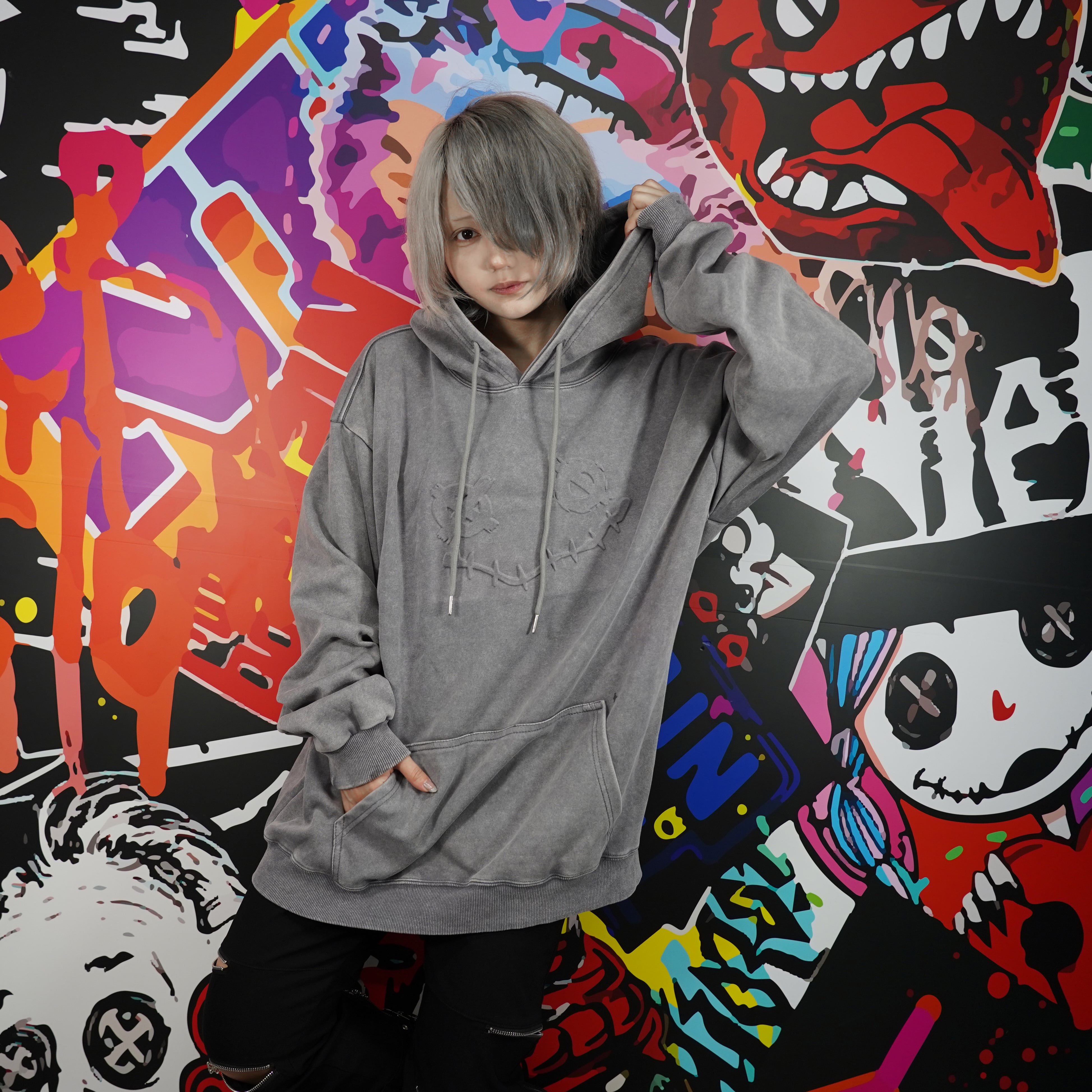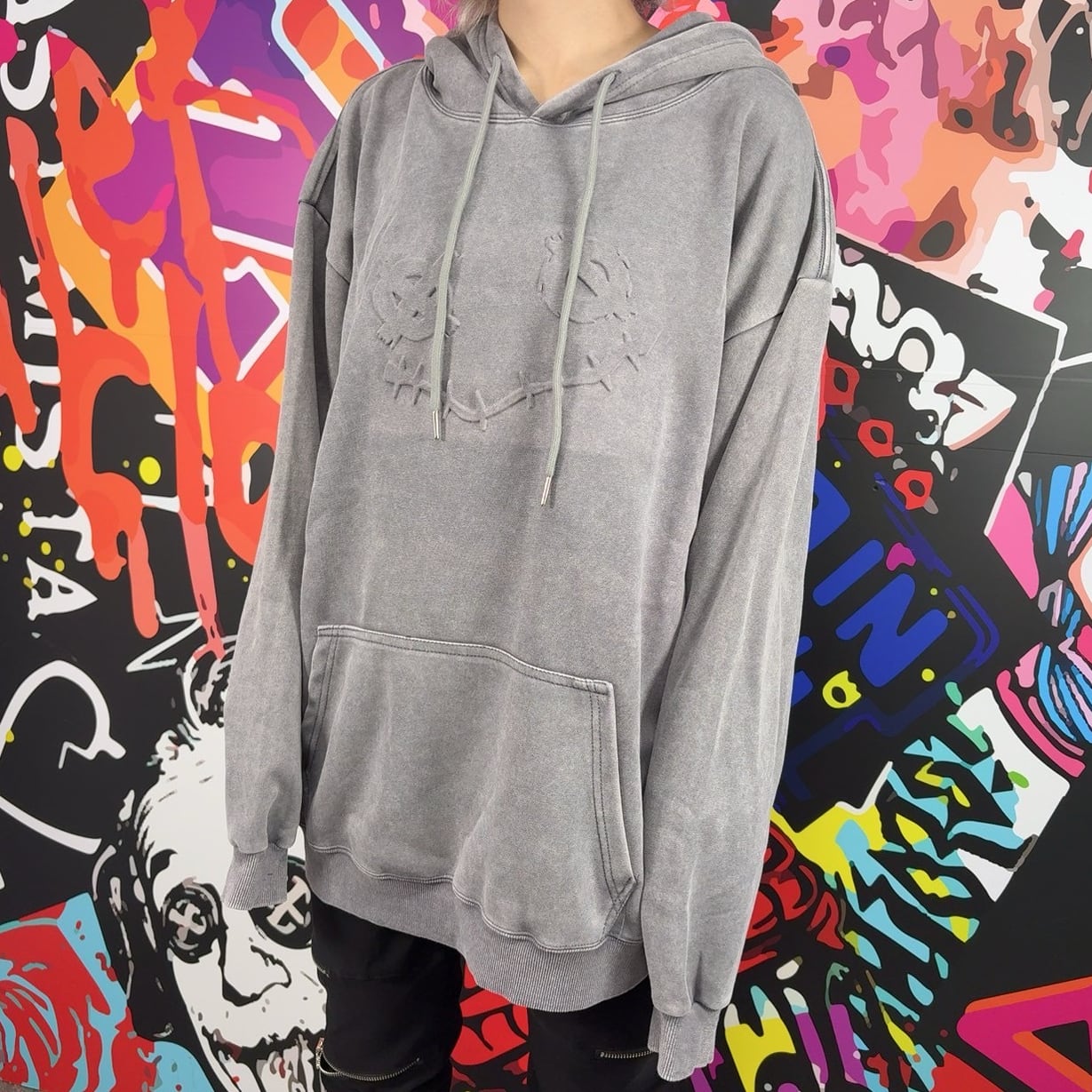 《プレゼントイベント》FRONT FACE ROSE ART GRAY HOODIE