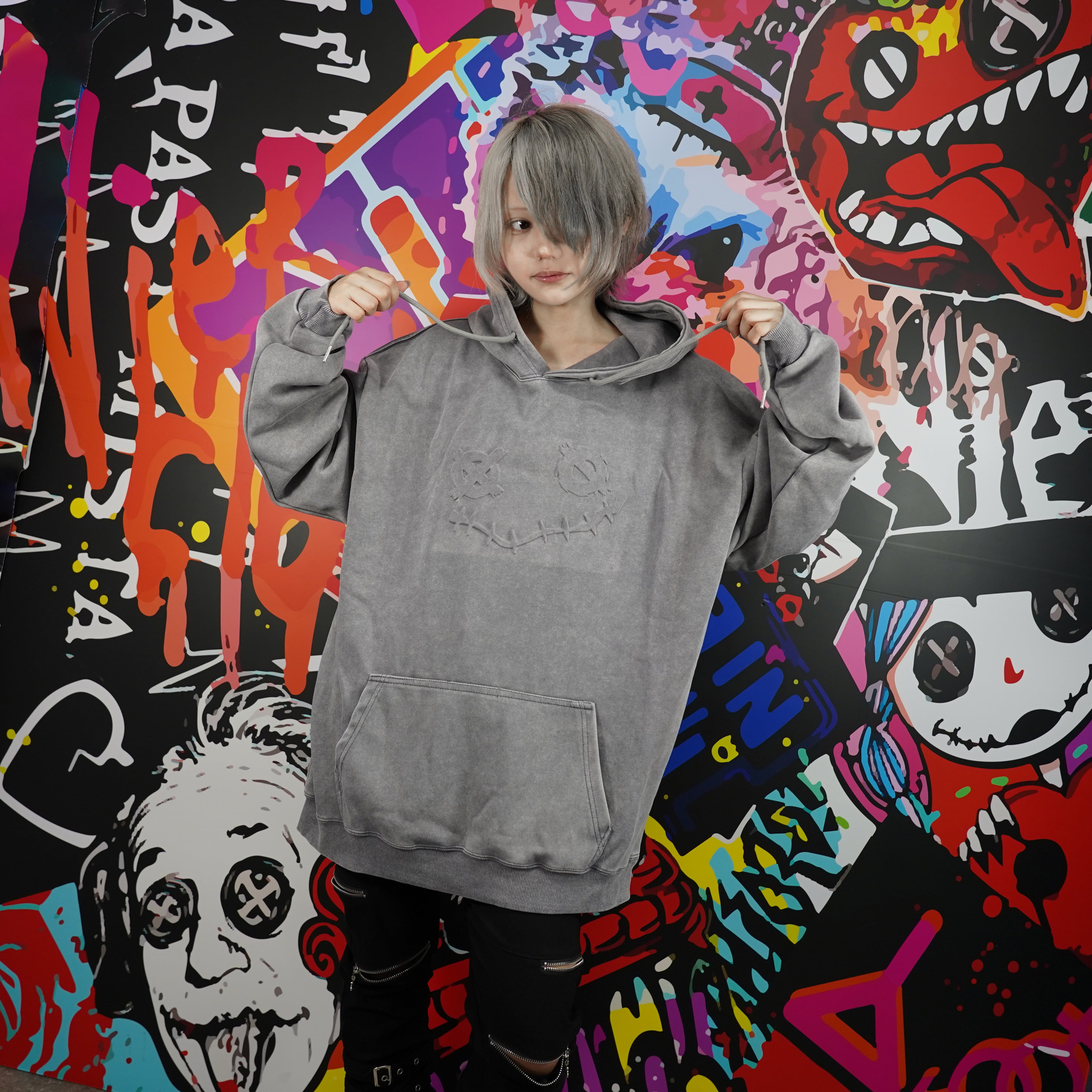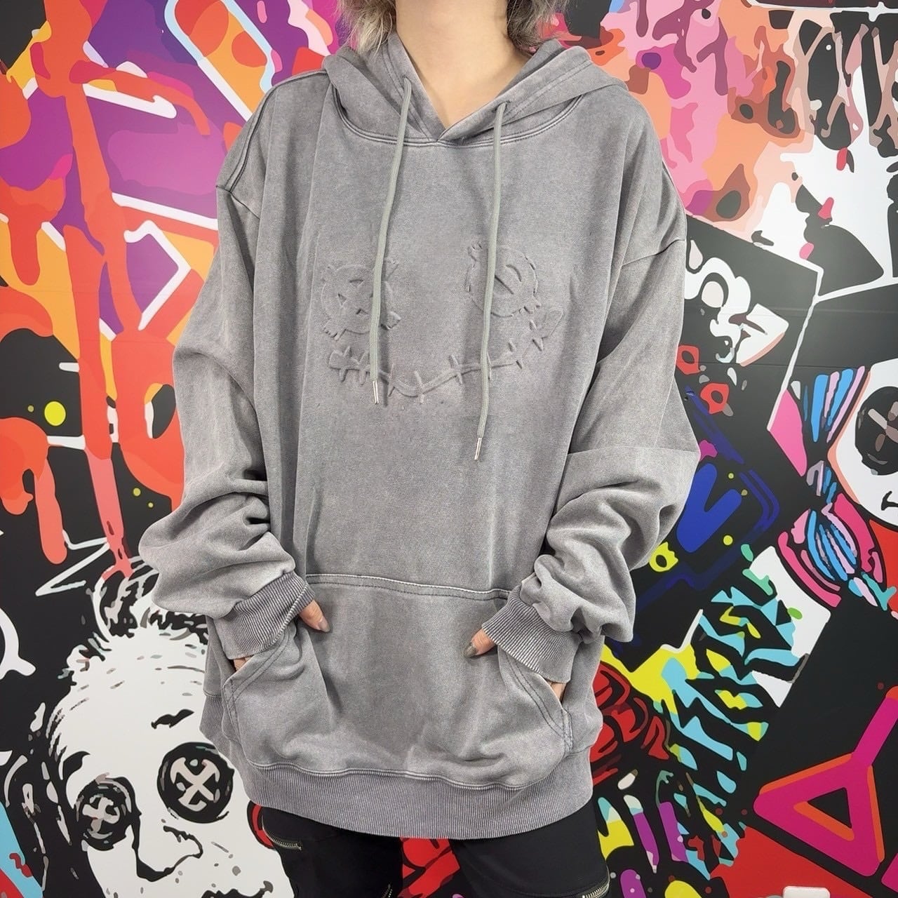 フロントにはブランドを象徴するフェイスデザインが立体的なエンボス加工で表現された存在感抜群のパーカーとなっております。
