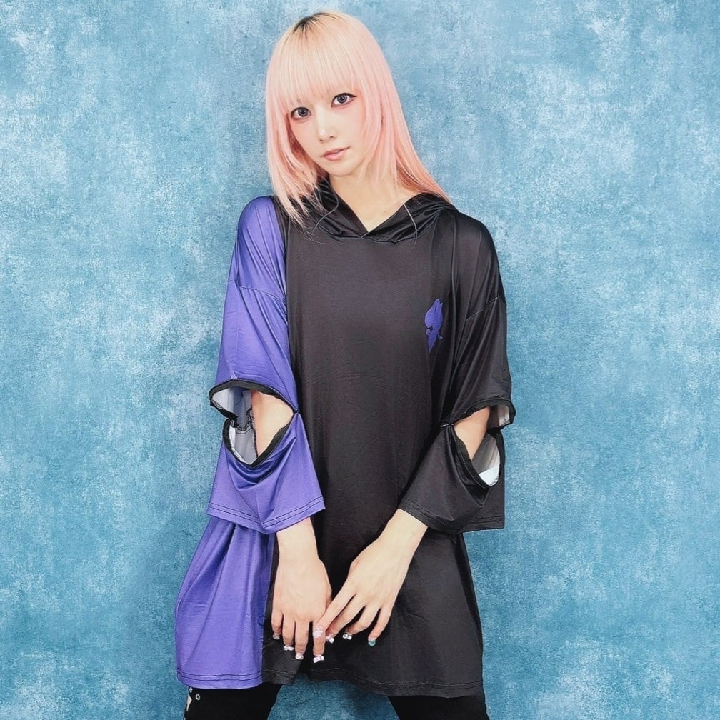 PURPLE×BLACK CHARACTER 2WAY SLEEVE HOODIE