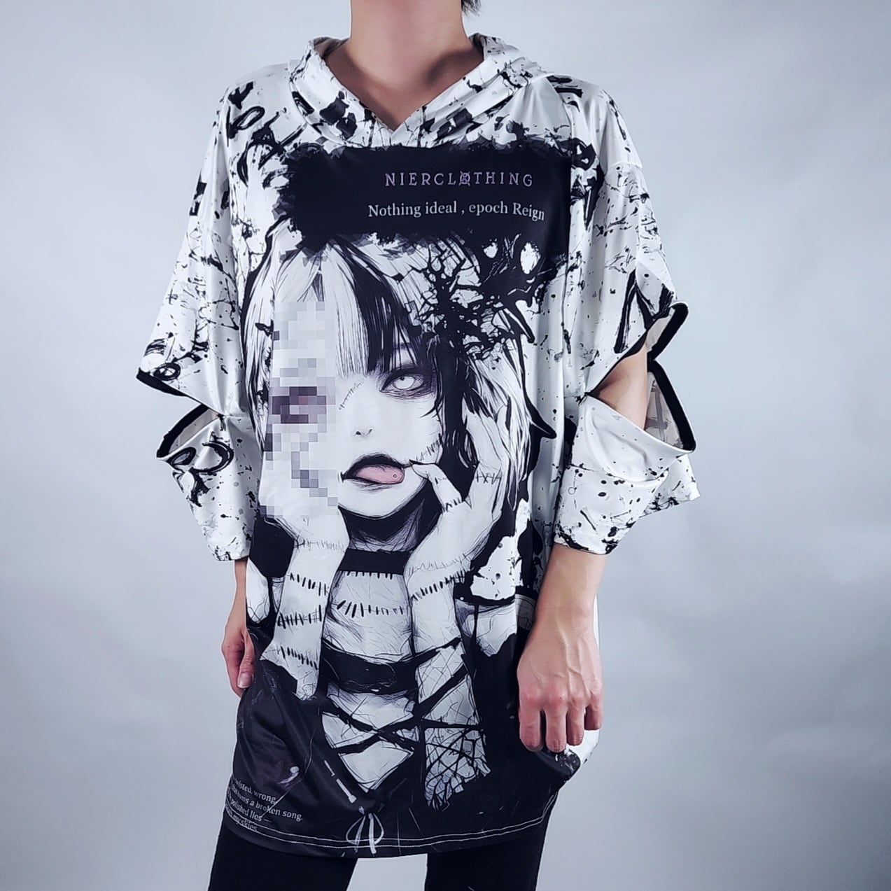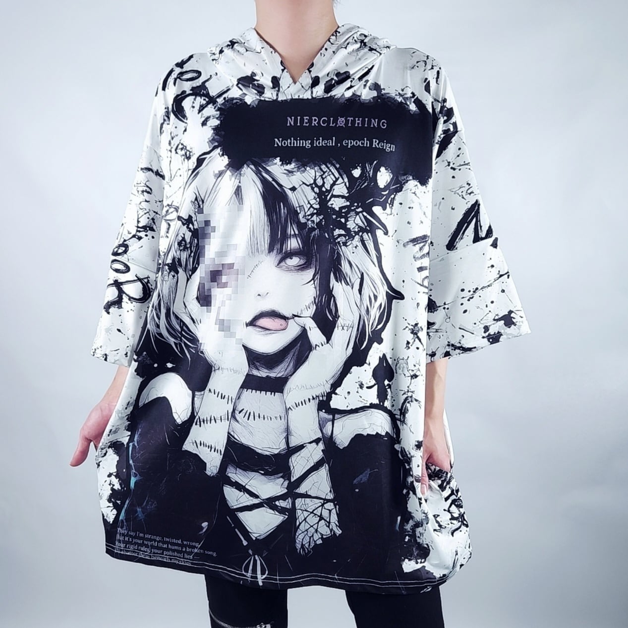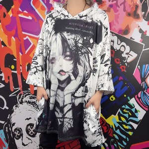 2WAY OVER SIZE 5分袖HOODIE【モザイクアート】
