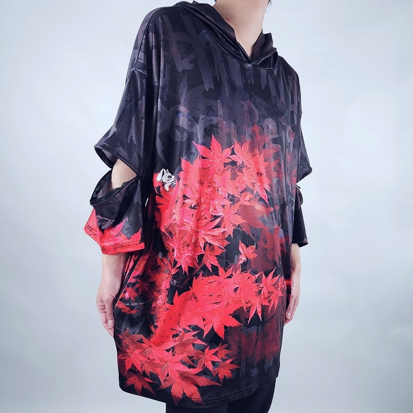 黒のボディに深紅の紅葉を前後ぐるりとレイアウトした、