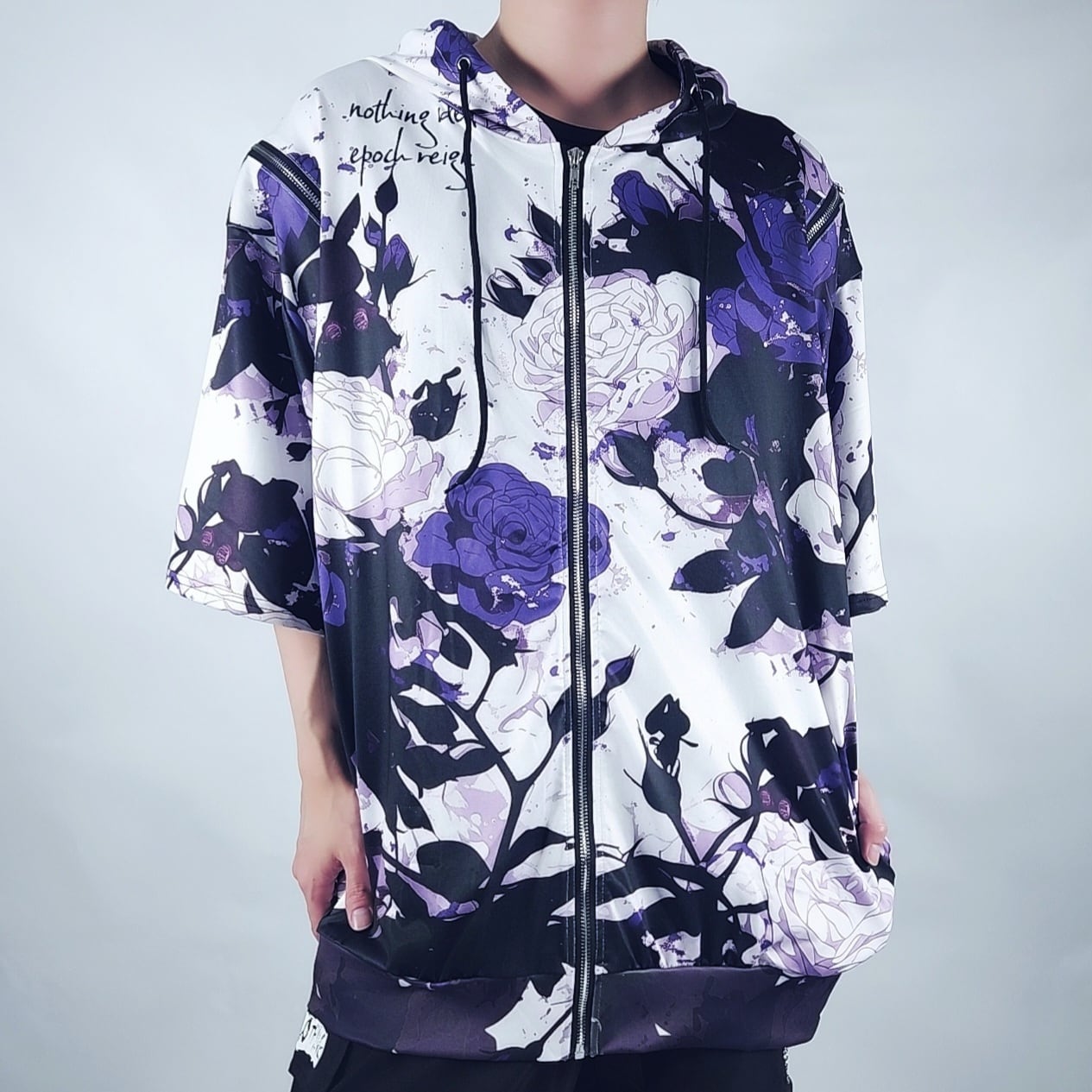 華やかでありながらダークな雰囲気を纏う紫薔薇の総柄は、コーディネートの主役になること間違いなしです✨