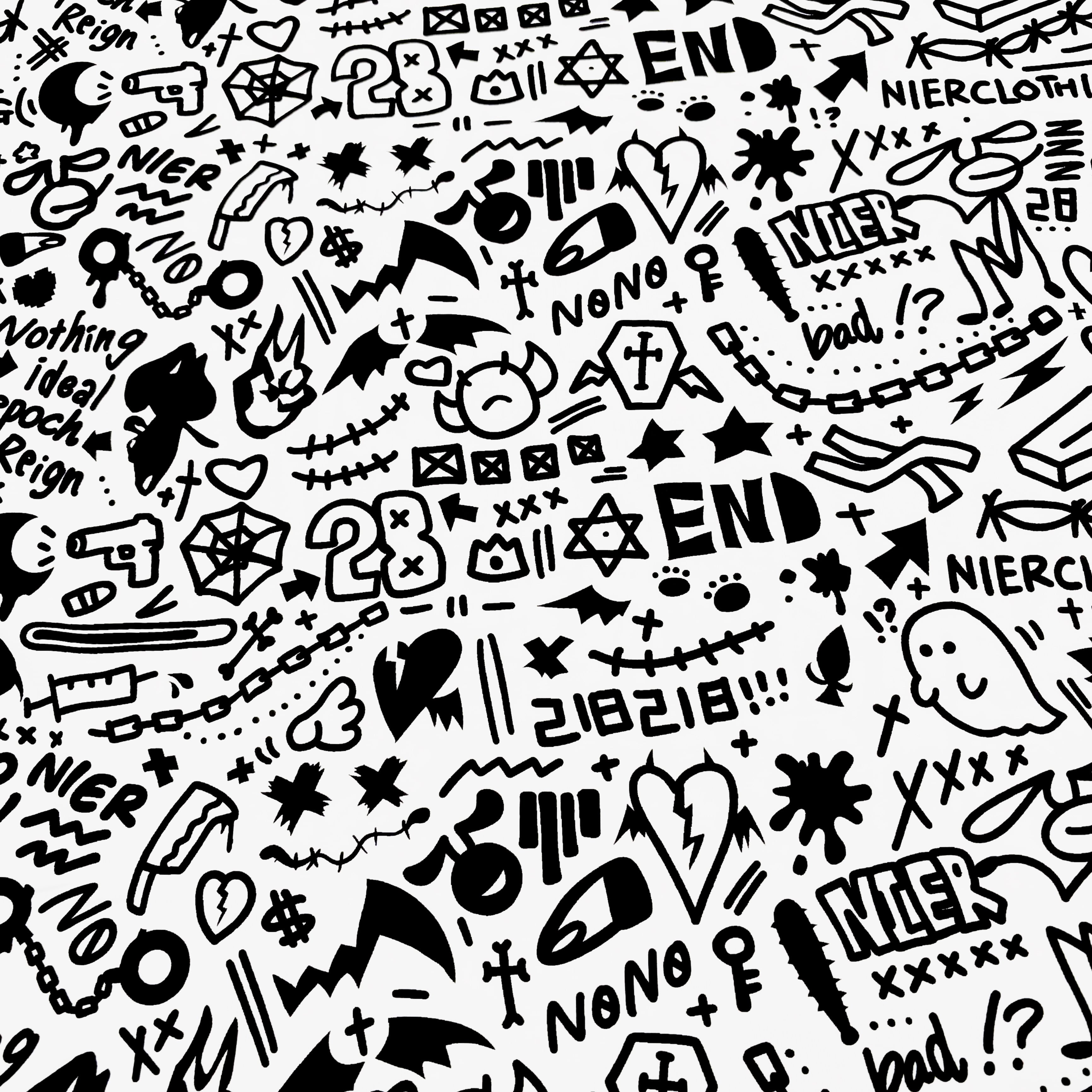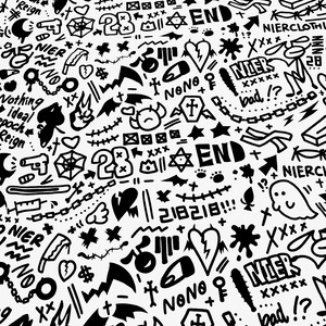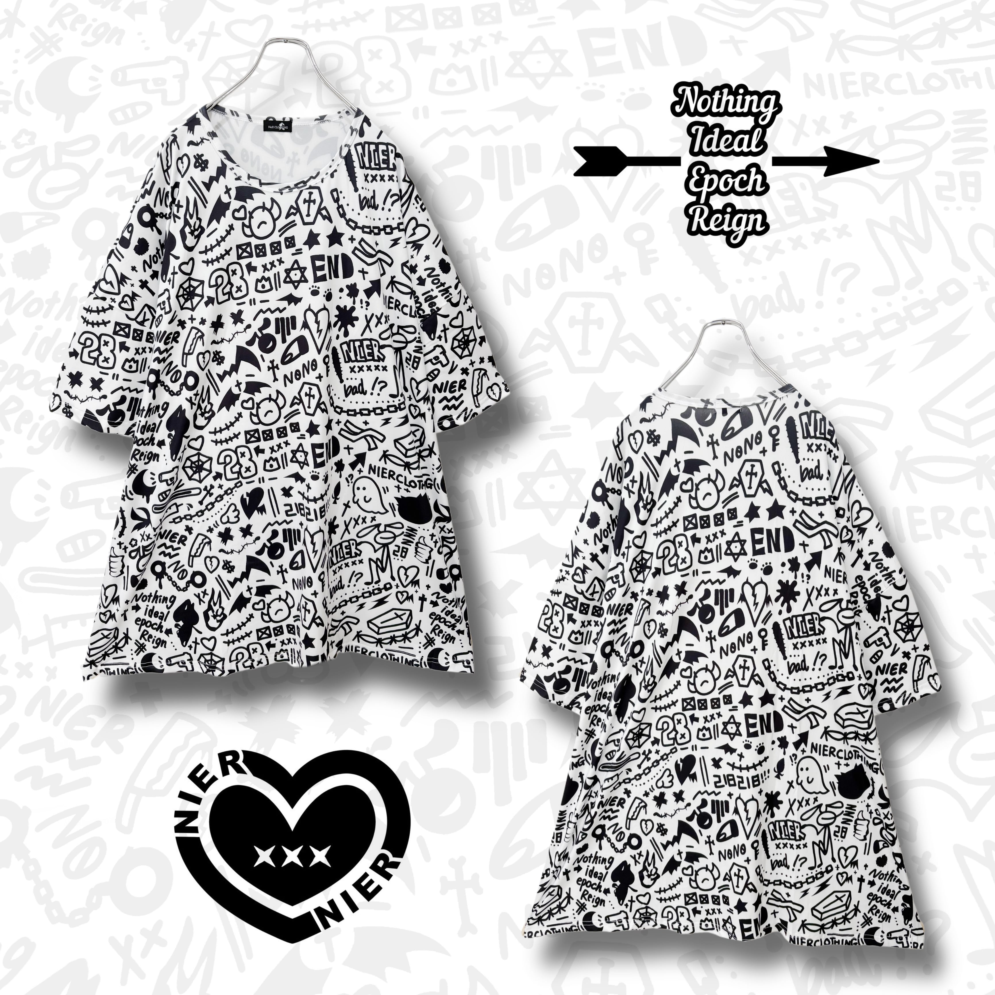 NIERの手書きモチーフを全面に散りばめた総柄トップスです。