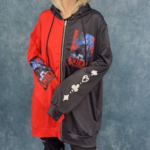 黒い袖にはトランプをモチーフにしたデザインを配置。