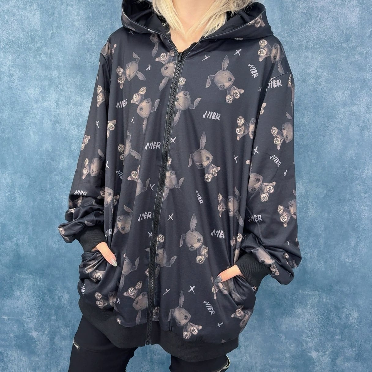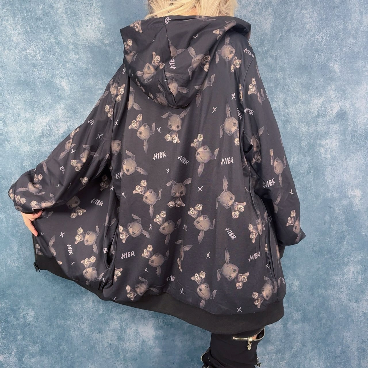 片面は闇かわデザインのNIERちゃんが全面にプリントされた総柄仕様。