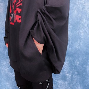 フロントいっぱいに描かれた当店オリジナルデザインが存在感を放つ、着物スリーブデザインのビッグフーディです。