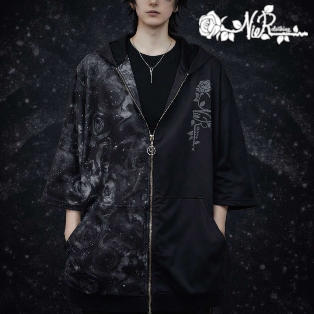 7分袖BLACK TWO-TONE ROSE ZIP OUTER