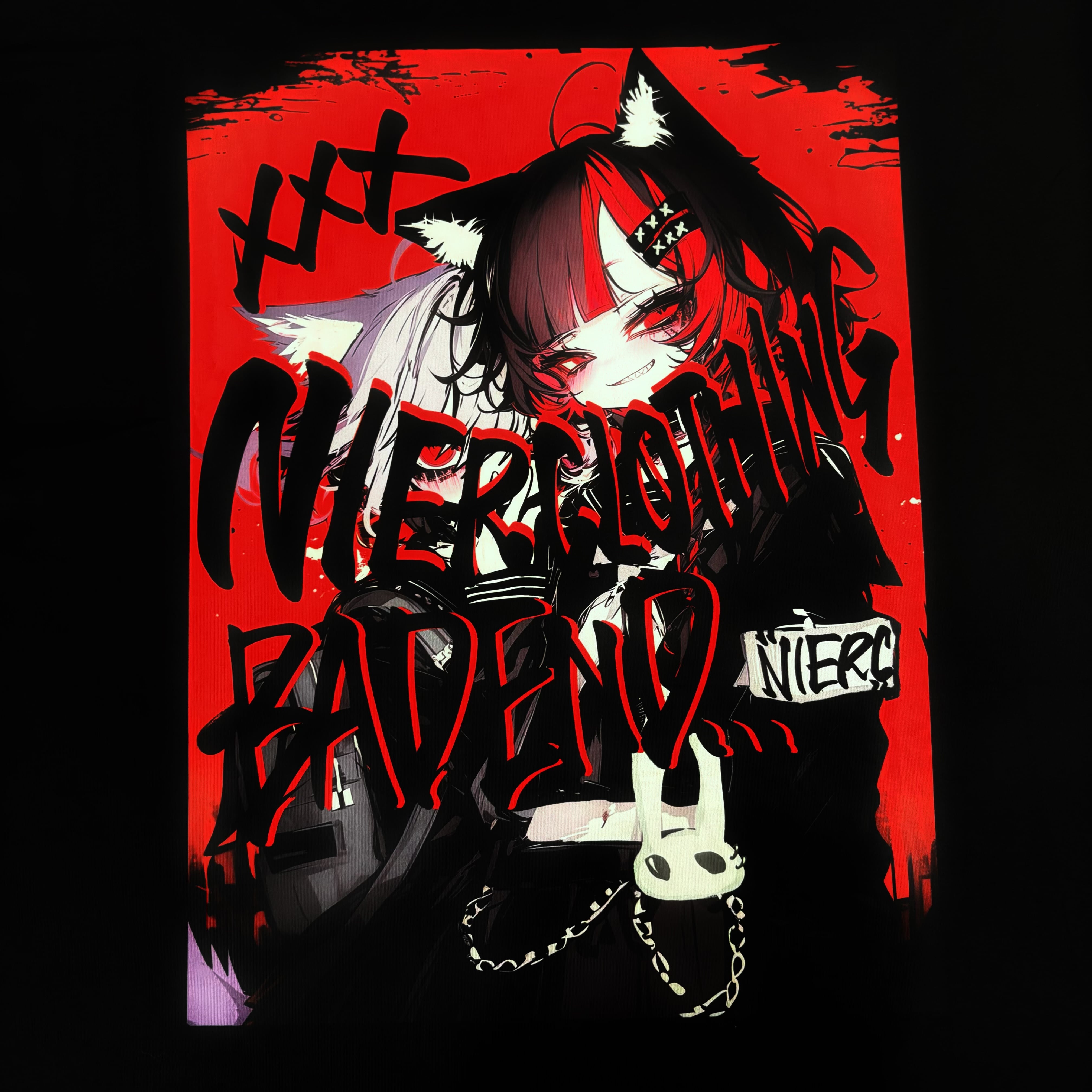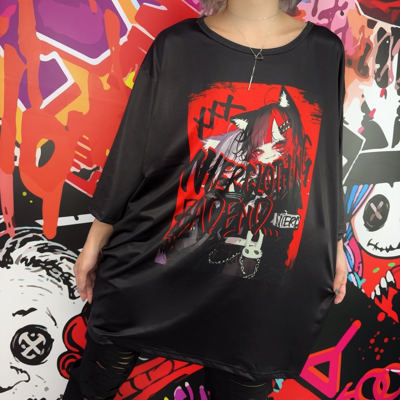 レッド×ブラックのBAD ENDグラフィックを大胆に載せた、存在感MAXのビッグシルエットT。