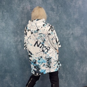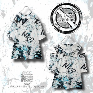大胆なBLUE×CRASHペイントとNIERロゴを全面に散りばめた、存在感たっぷりのトップスとなっております。