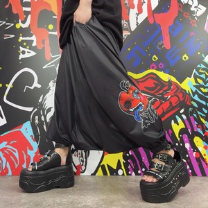毒々しいアップルグラフィックを大胆に施したサルエルパンツが登場✩