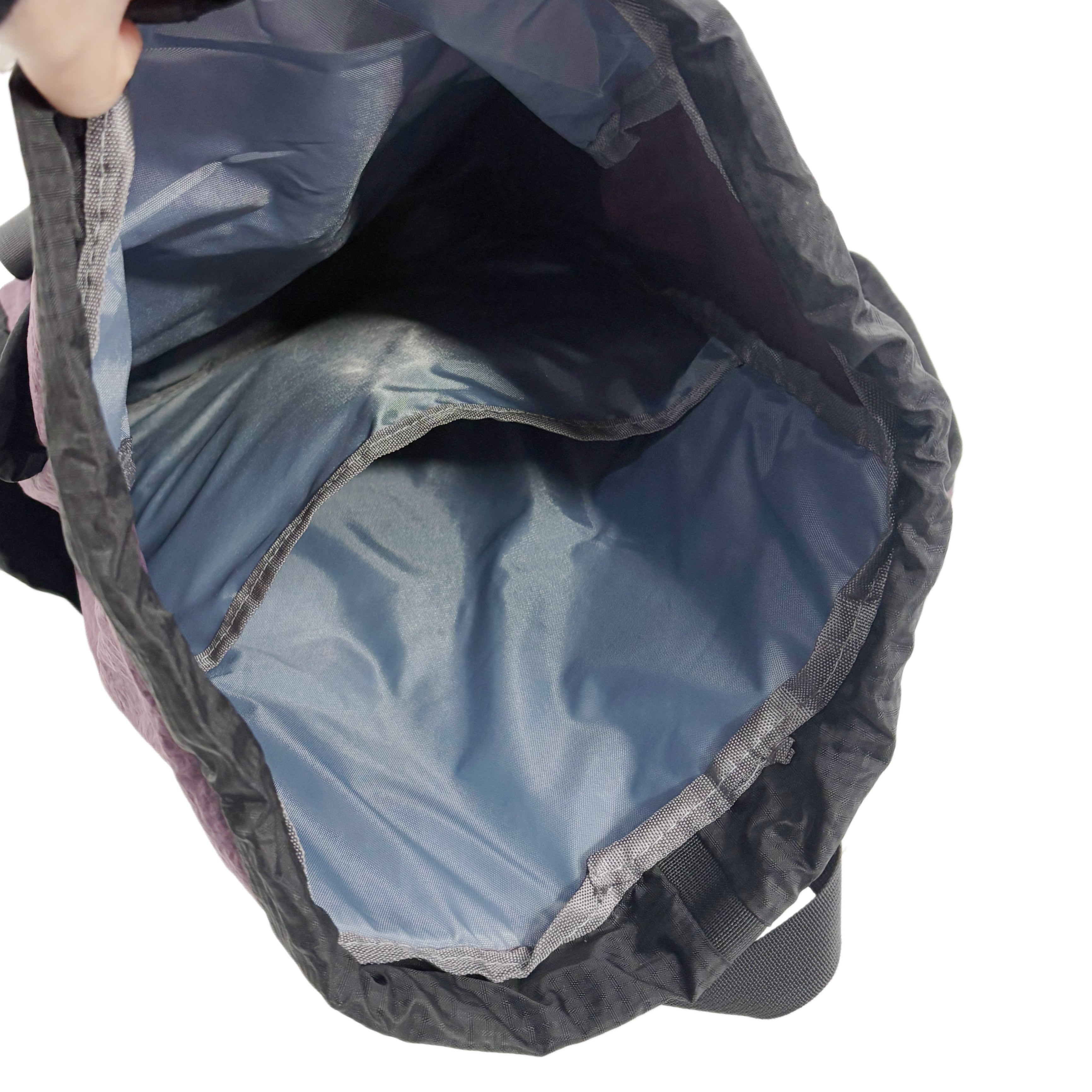 大きく開く巾着仕様で、パーカーやタブレットなど