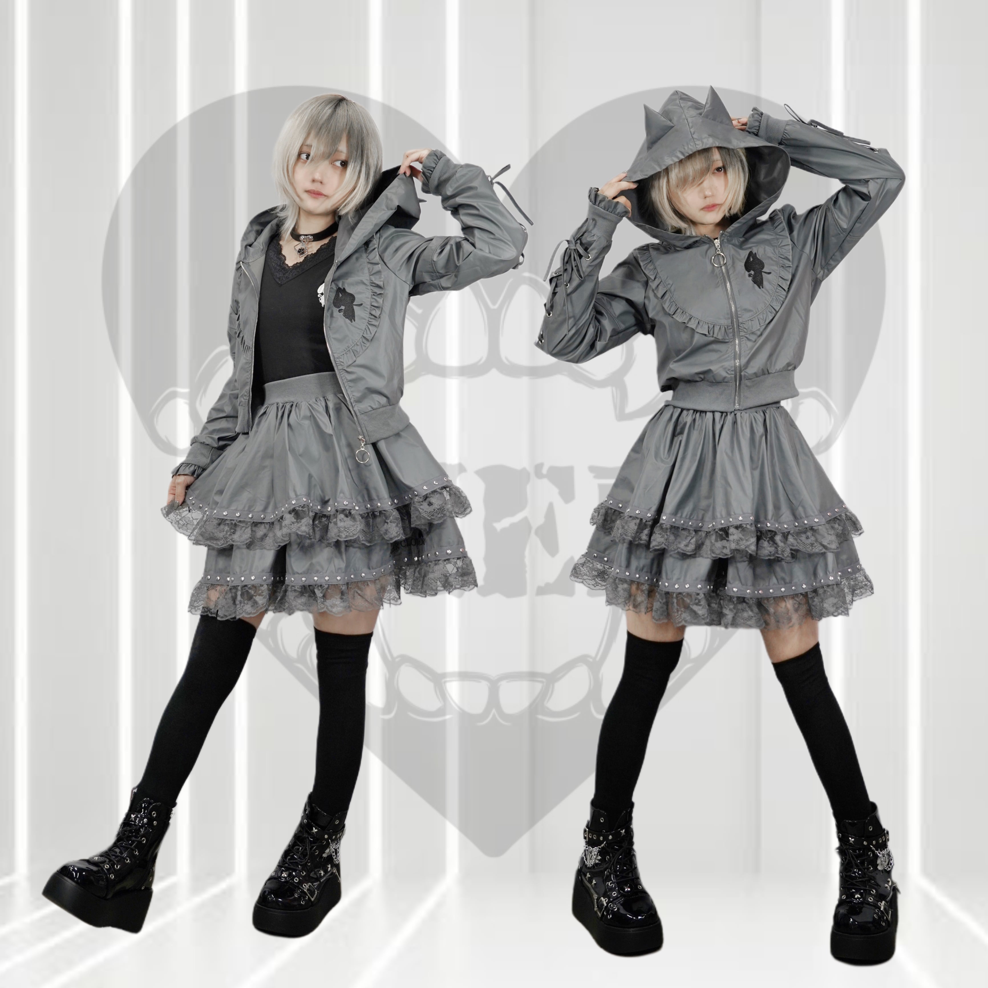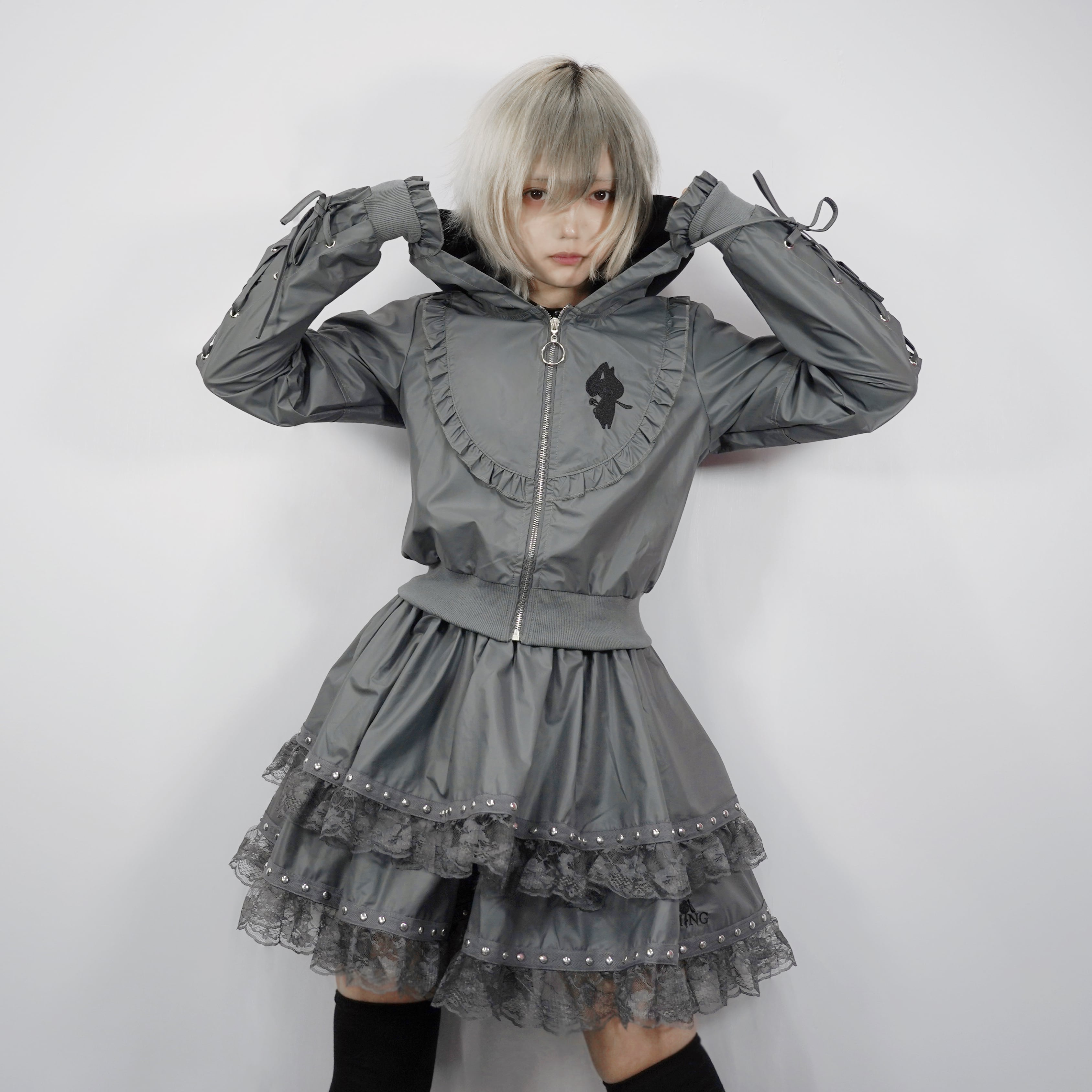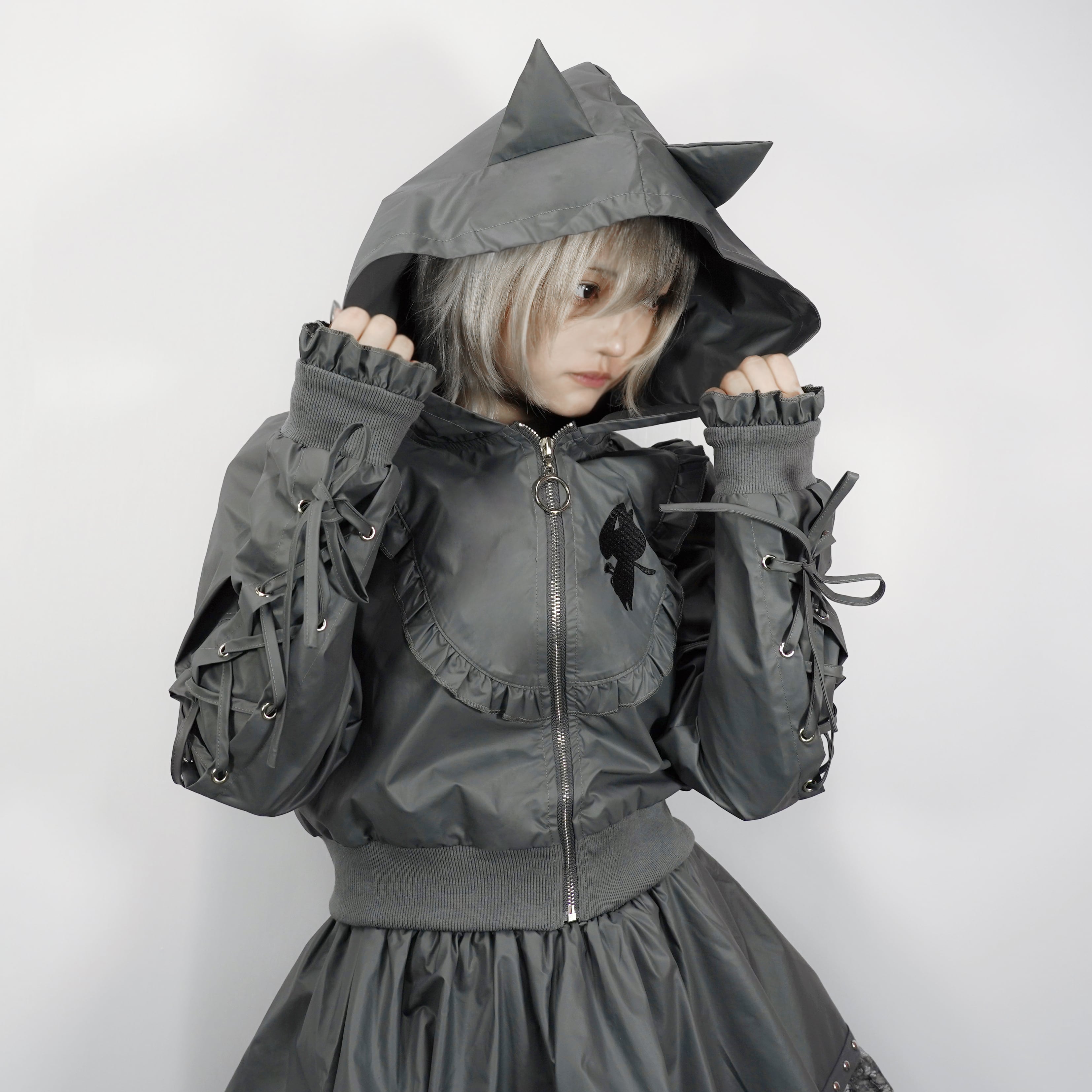 猫耳付きレースアップゴシックフリルアウター【GRAY】