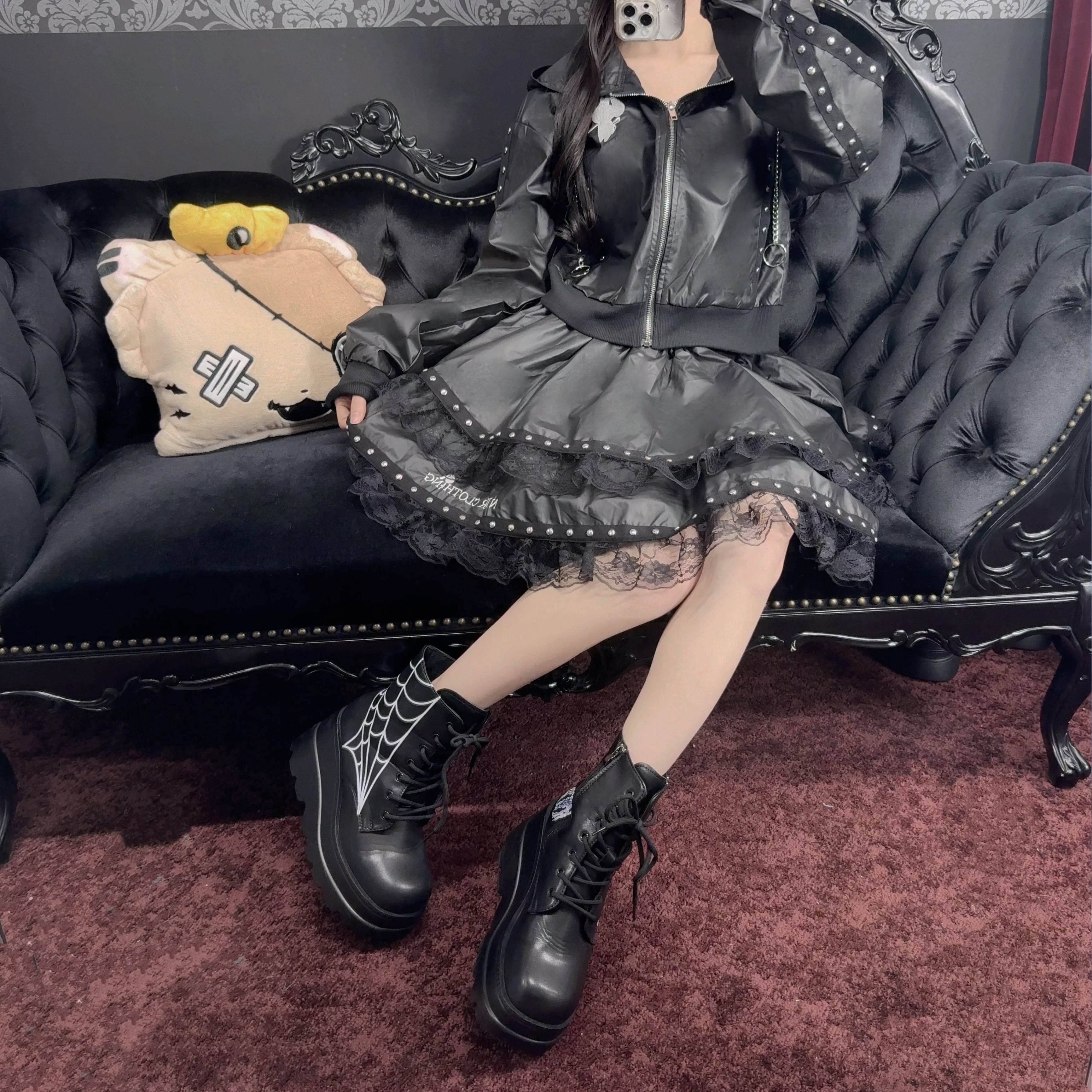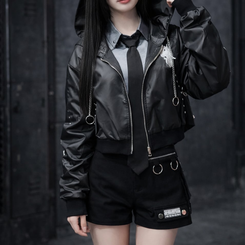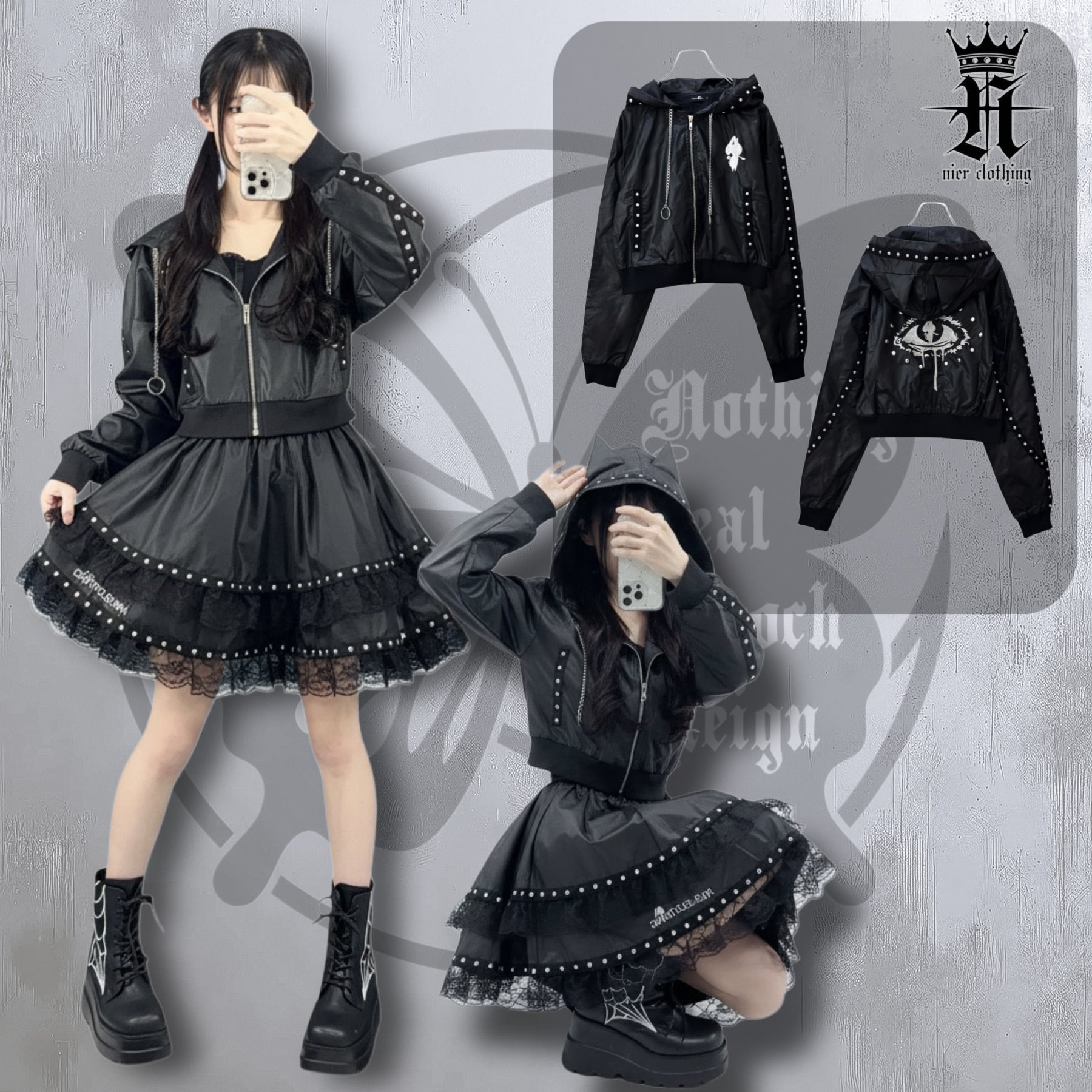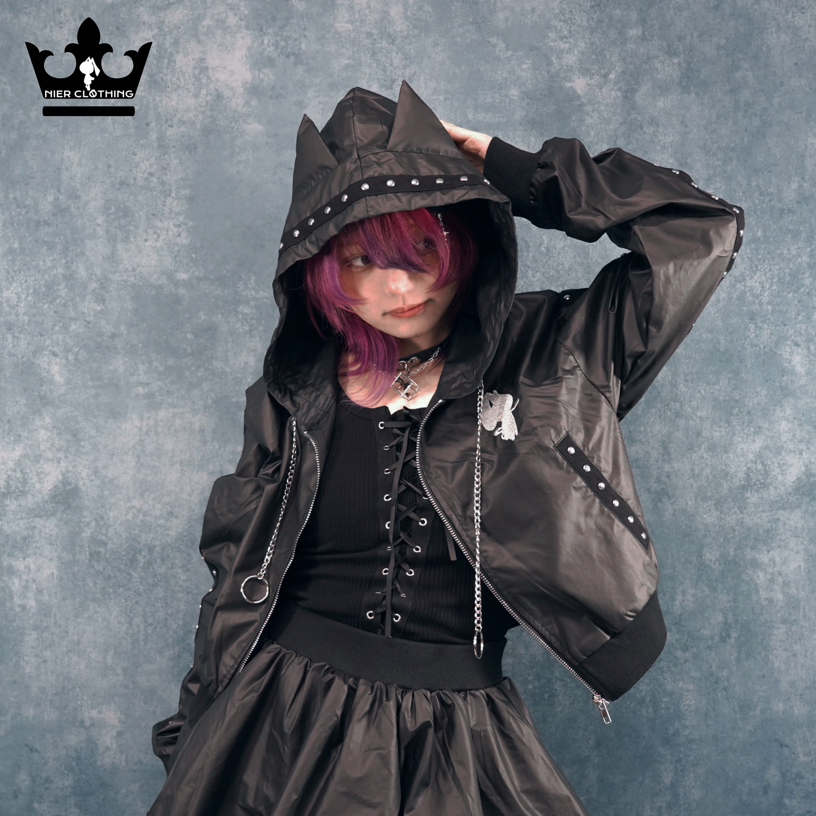《先着39点限定55%OFFセール》高品質CAT EAR STUDS GOTHIC ZIP OUTER【刺繍DESIGN】