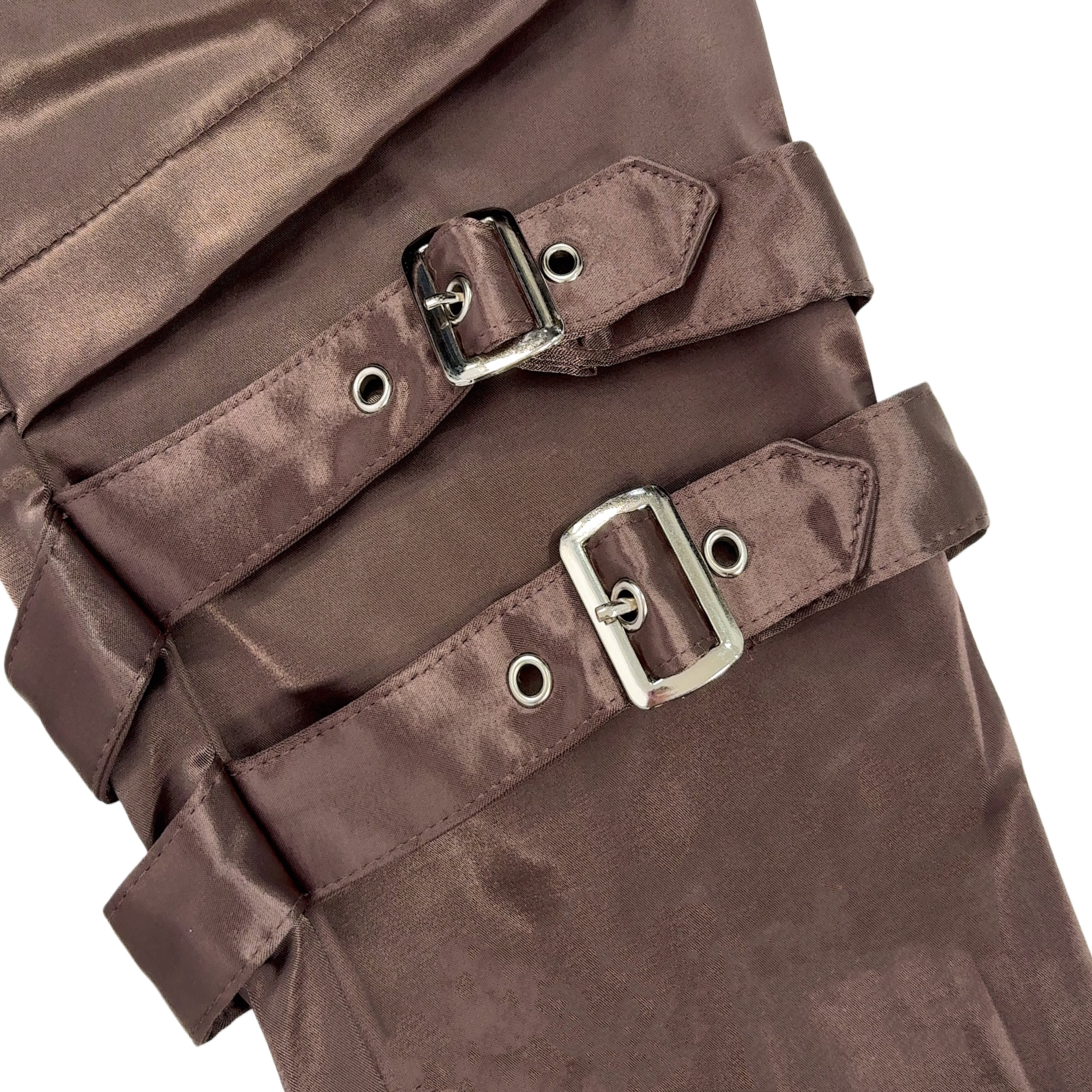 《BLACK FRIDAY SPECIAL SALE》高品質刺繍入りサテン生地BROWN STYLISH PANTS