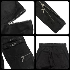 SATIN CROSS CHARM ZIP STYLISH PANTS