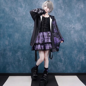 CROSS刺繍入りFRILL PURPLE CHECK SKIRT【インパン付き】